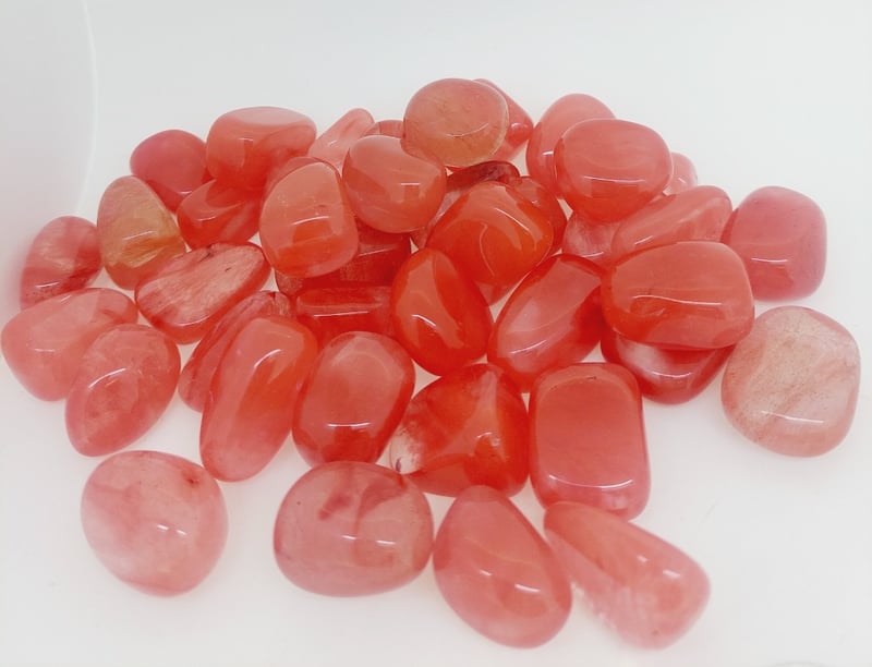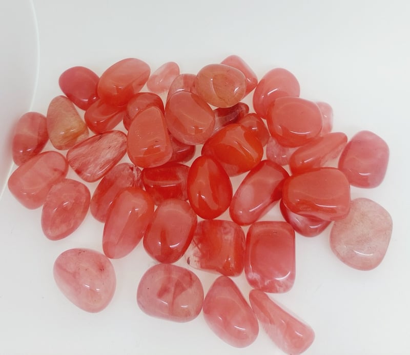 ASSORTED BAG OF STRAWBERRY OBSIDIAN CRYSTALS.