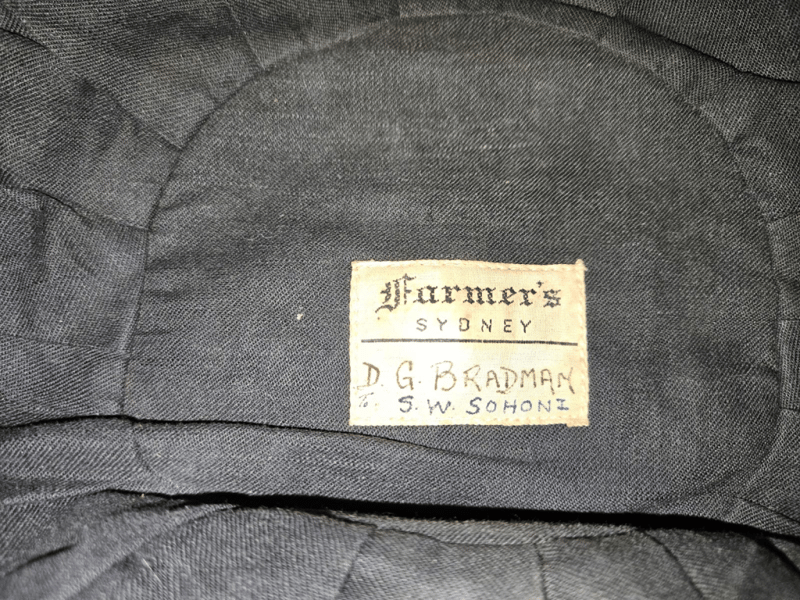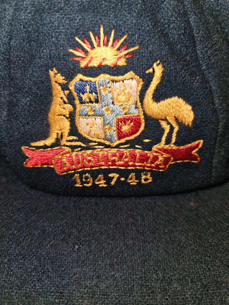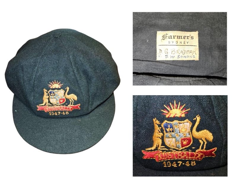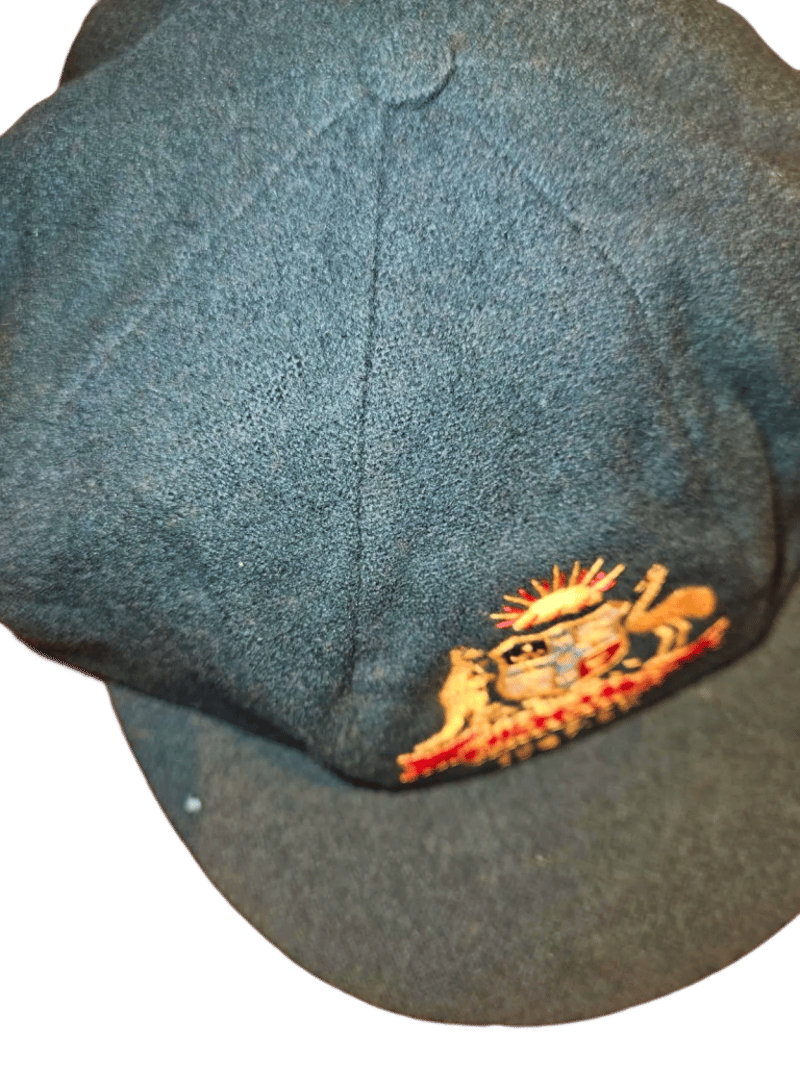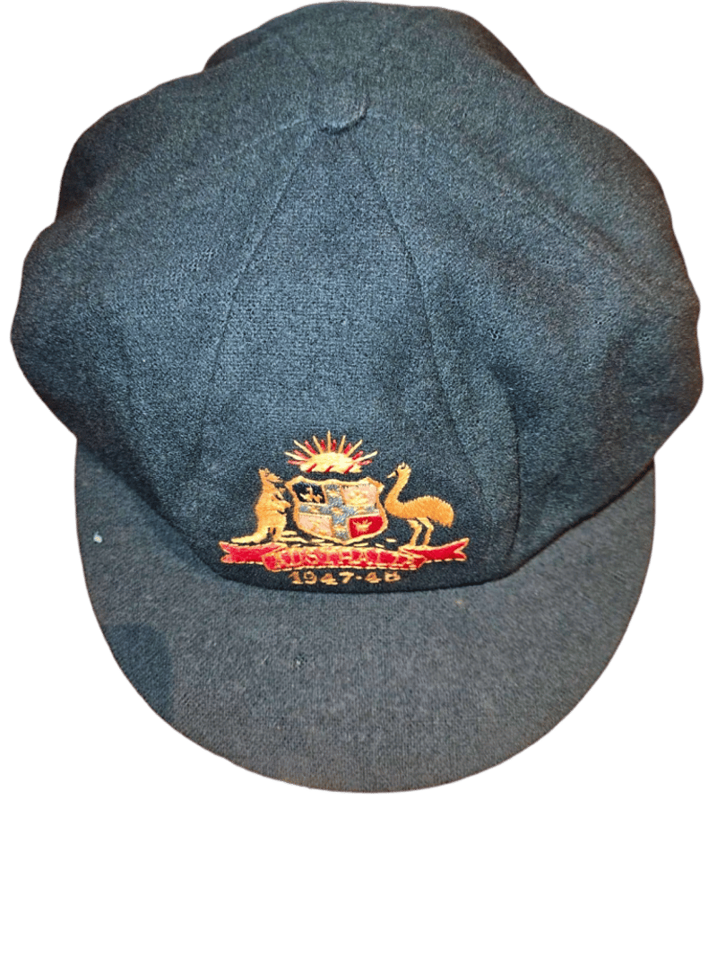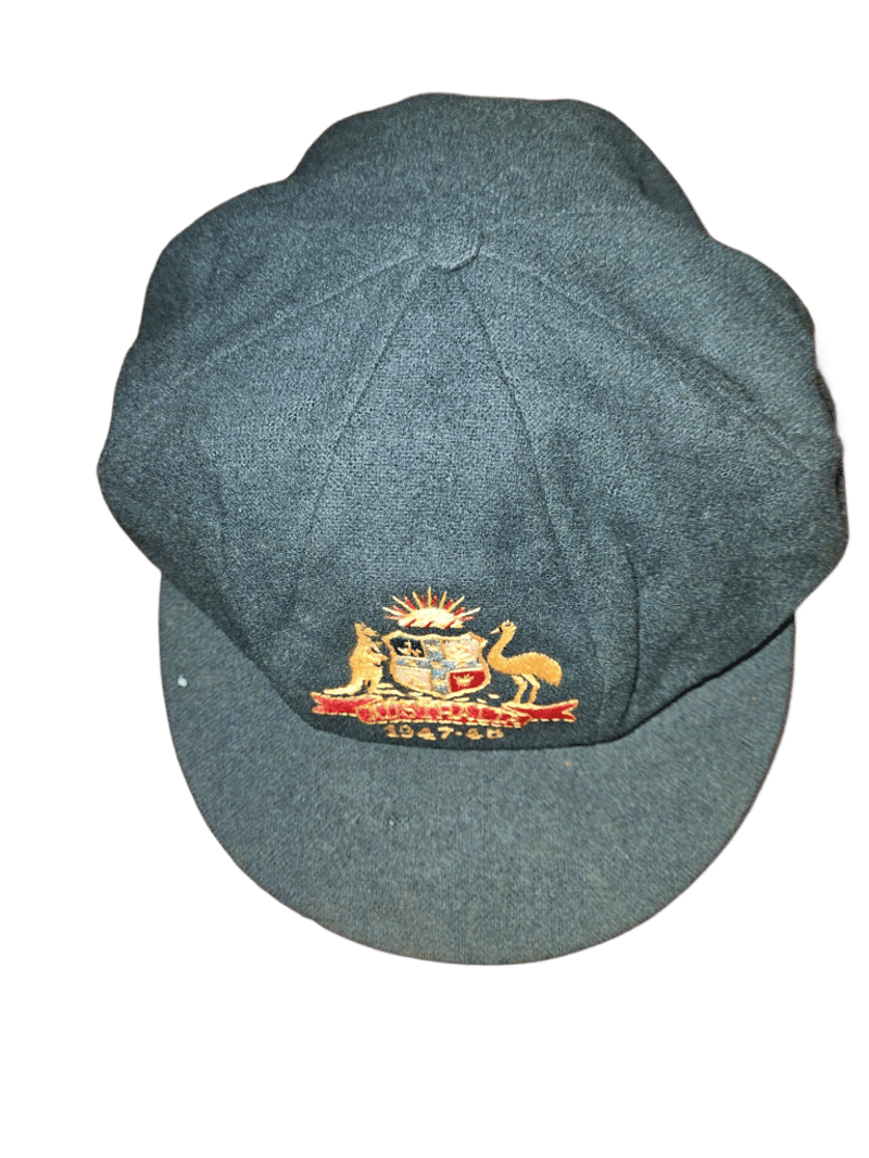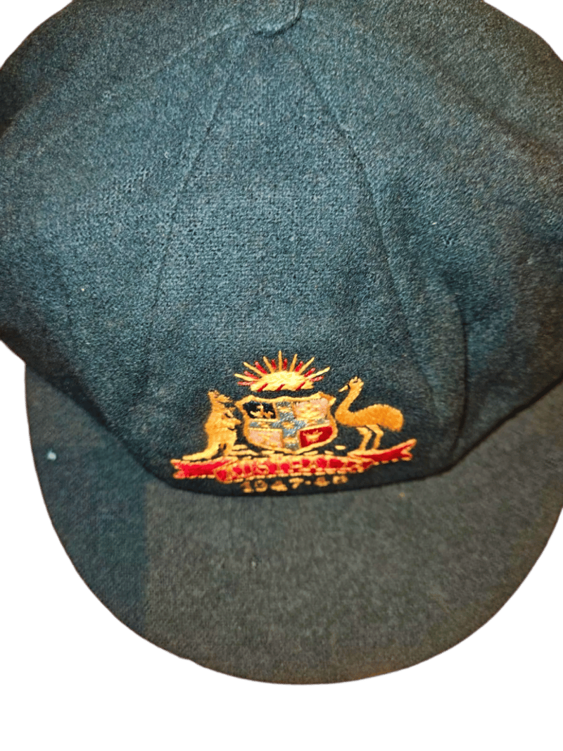 1947–48 Donald Bradman Baggy Green – An Australian Treasure! Unveil a piece of cricketing history with this stunning 1947–48 Australian Baggy Cap, crafted by Farmer’s Sydney and adorned with the Australian Coat of Arms. Inscribed with the iconic names “D.G. Bradman” and “S.W. Sohoni” on the interior label, this rare gem was gifted to Indian cricketer S.W. Sohoni during the epic 1947–48 Australia vs. India Test series. Cherished in the family collection ever since, this cap links you to Don Bradman’s invincible era and a memorable exchange with the Indian squad. The 1947–48 series marked India's first Test tour of Australia as an independent nation, shortly after gaining independence in August 1947. Led by Lala Amarnath, the Indian team faced a formidable Australian side captained by Don Bradman, in what was his final home Test series. Australia dominated, winning 4–0 with one match drawn. This was part of the post-World War II revival of international cricket. Complete with provenance photos and documentation—don’t miss your chance to own this legendary artifact! Further verification available upon request.