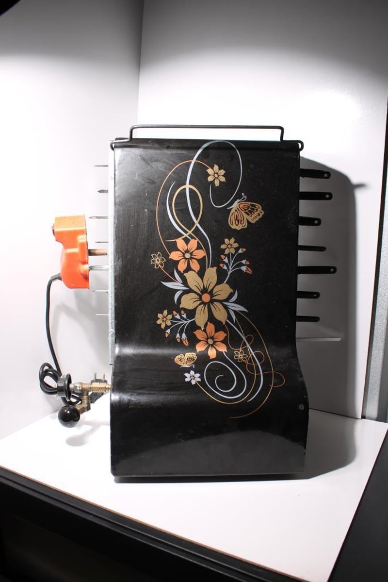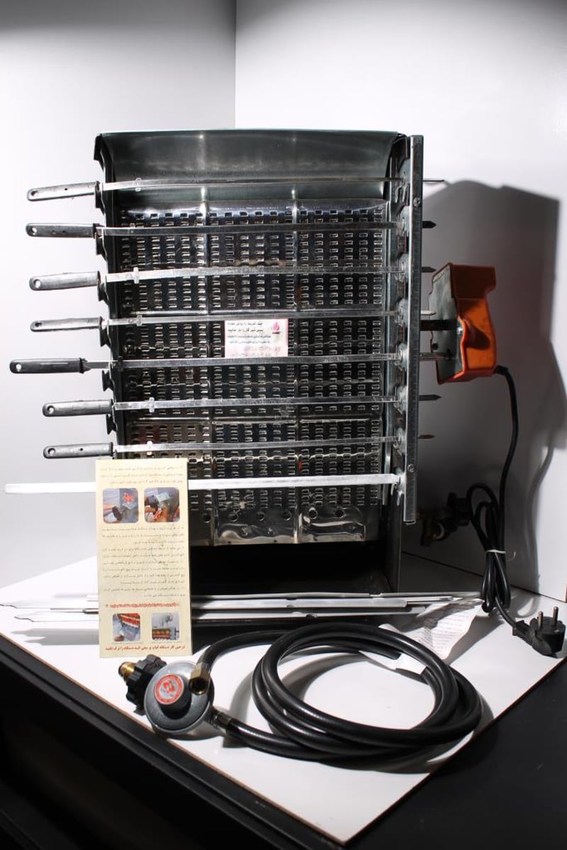 Gas Rotisserie Kebab Grill with Motor & Skewers – 8-Skewer UnitComplete gas rotisserie grill with motor, skewers, regulator hose and instruction cards.Unit appears unused and in new condition.