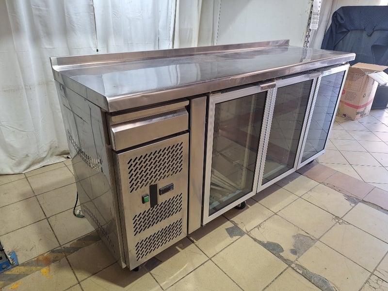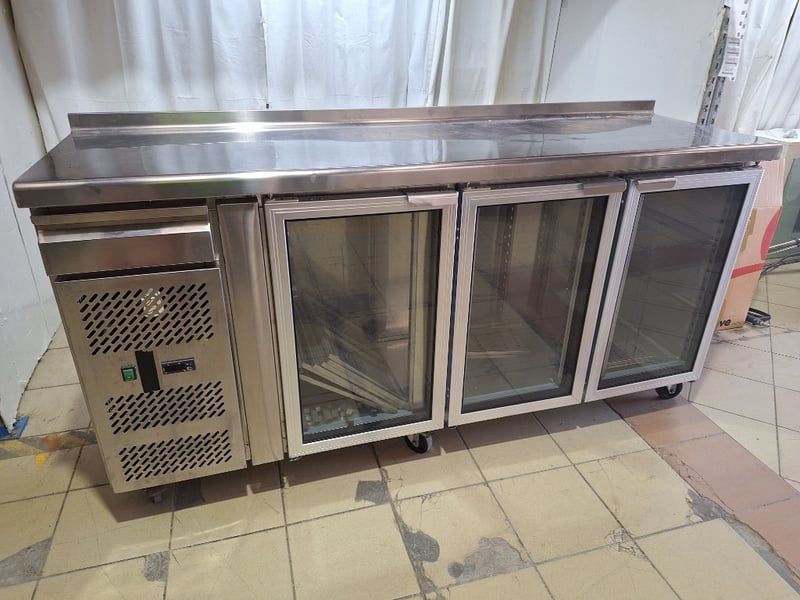 3 Door Bar Fridge For A Commercial Kitchen, Stainless Steel Style, Silver Finish