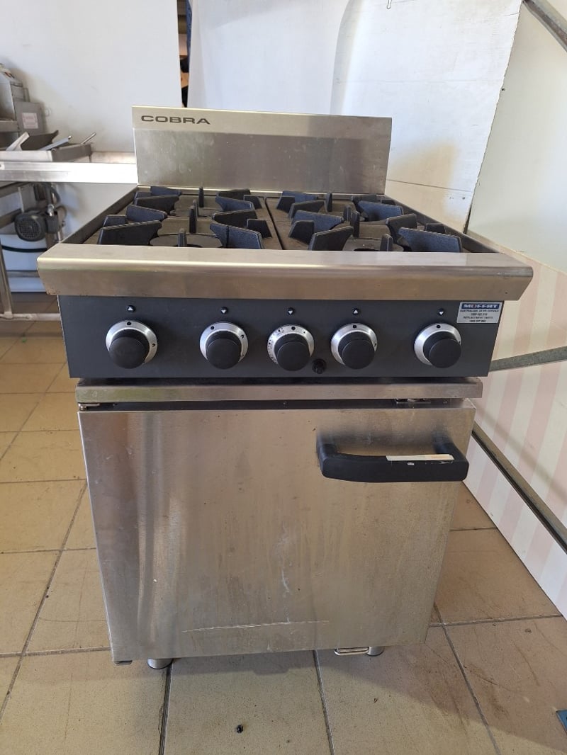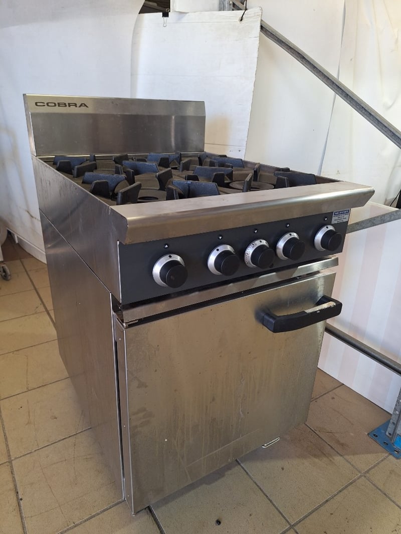 Cobra Commercial Gas Range Oven, Four-burner, Stainless Steel Style