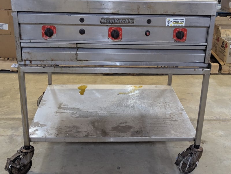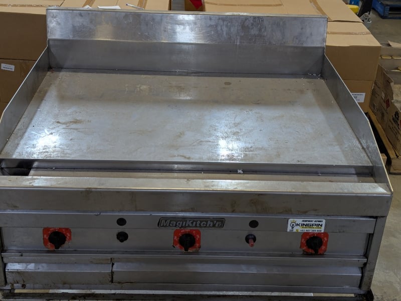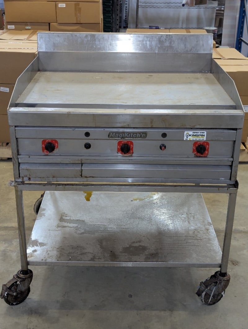 Commercial gas griddle, MagiKitch'n, 3 control knobs