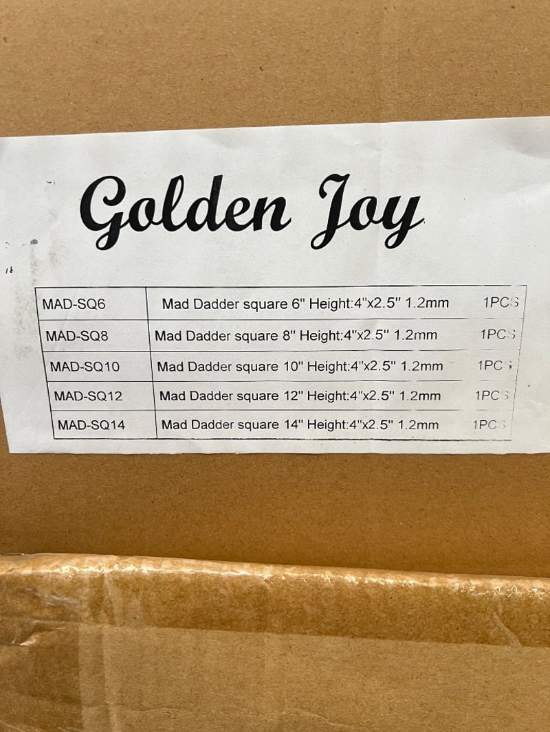 Catering supplies, Golden Joy, models include; MAD-SQ6, MAD-SQ8, MAD-SQ10, MAD-SQ12, MAD-SQ14, assorted sizesQuantity to pallet, sold as lot
