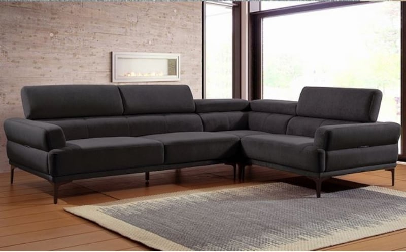 Corsica Corner lounge - Grey RRP: $8,360 The Corsica is a 4 to 5 seater corner lounge, inspired by the International Style design with straight lines that create a modern horizontal flow. This look can be altered, refreshed, or visually accented by changing the angles of the five adjustable headrests. When placed at the corner of the room, the Corsica achieves the practical goal of maximising floorspace, yet if placed in the middle of a large hall, with only one of its sides against the wall, its other “free” exposed side can act as an elegant partition, both visually and functionally between the living room and a study, or a dining room, or a games room, that are “happening” behind it. High quality wool and cotton blend upholstery 5 adjustable headrests to allow for changing looks Maximum floorspace utilisation if used at a corner Can create a visual and functional partition inside a large living area External measurements: Left 273cm x Right 194 x Depth 103cm Colour: Grey