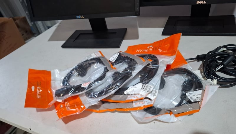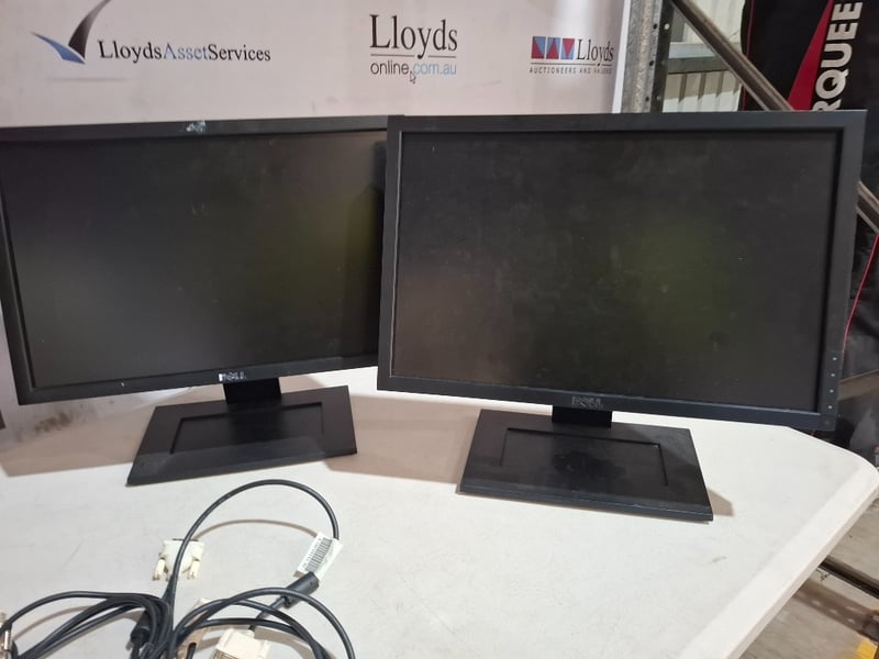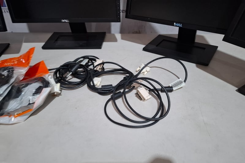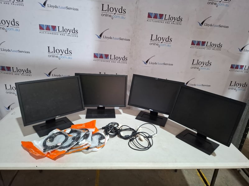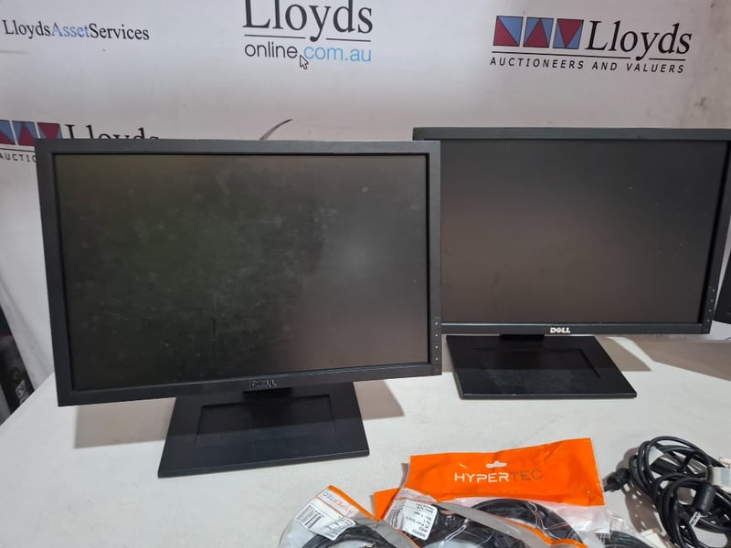 Assortment of Dell Monitors, Monitor Stands, Power Cords and VGA CordsQty: 4Note: Working Condition Unknown, Dents and Scratches, Inspection RecommendedSold As Lot