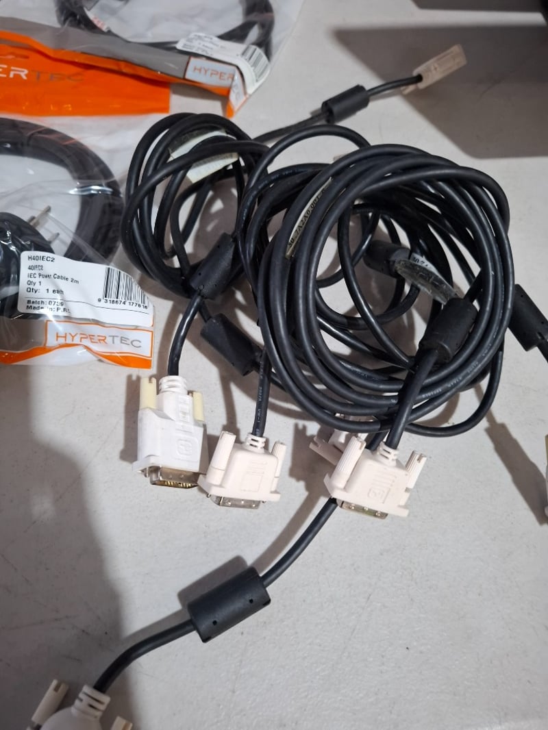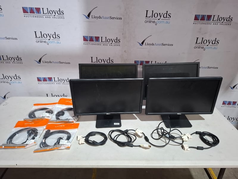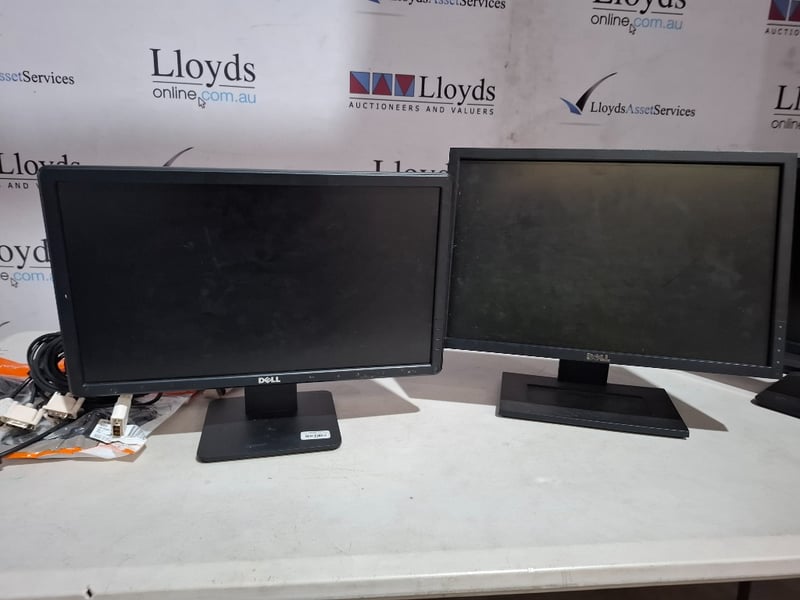 Assortment of Dell Monitors, Monitor Stands, Power Cords and VGA Cords