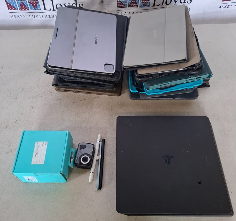 Assorted Lot Of Tech Items Including, PS4, Tablet Keyboard Cases, And Web CamSold as lotNote: conditions unknown, Inspection recommended