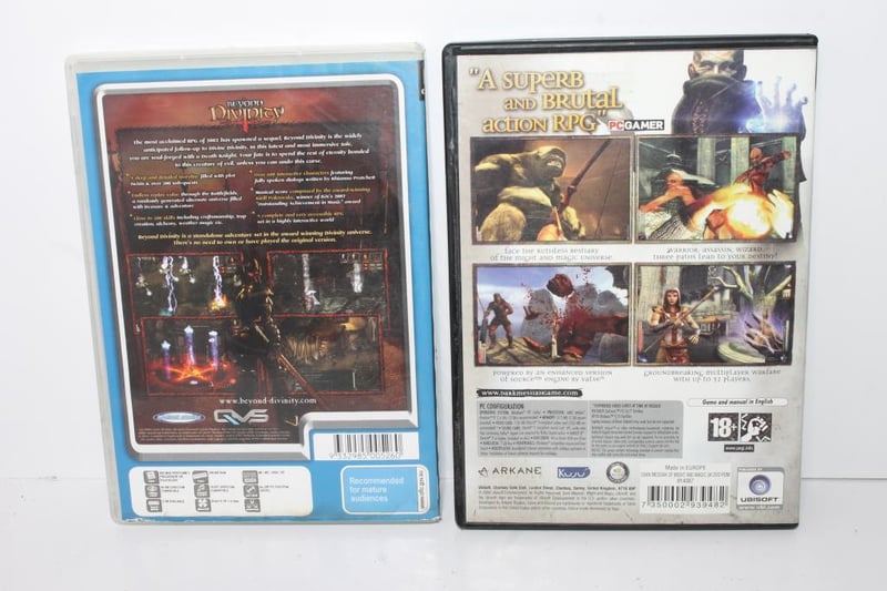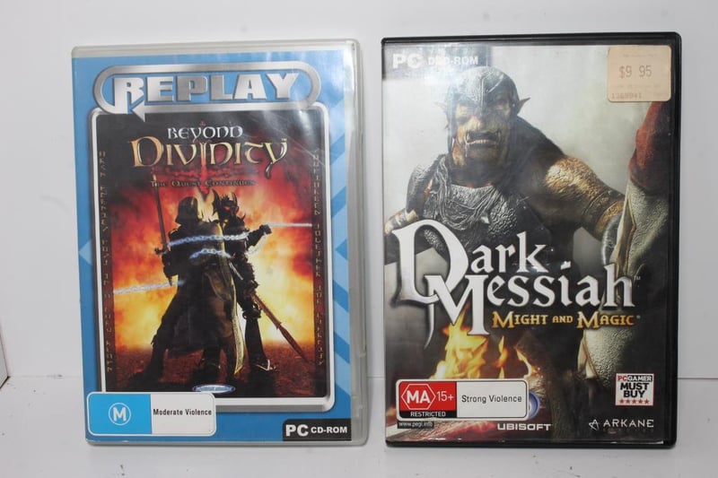 PC Games – Beyond Divinity & Dark Messiah (2)Both in original cases with cover art; general age-wear present. All untested and in varying condition – may show marks, scratches, or cosmetic wear from storage.