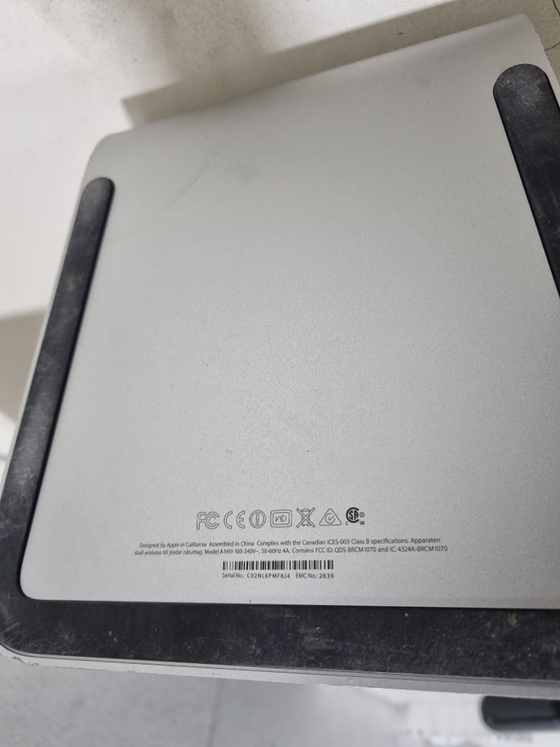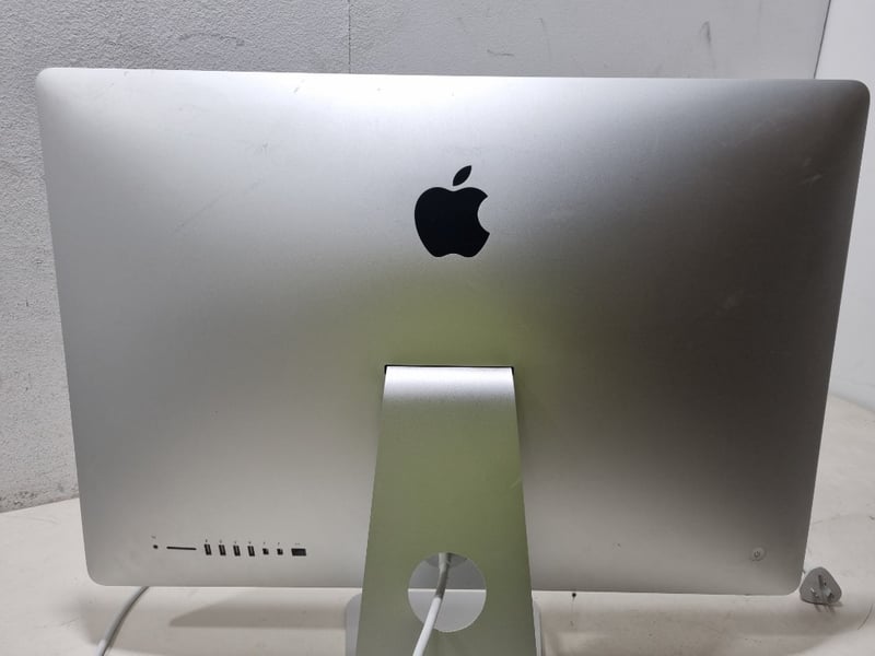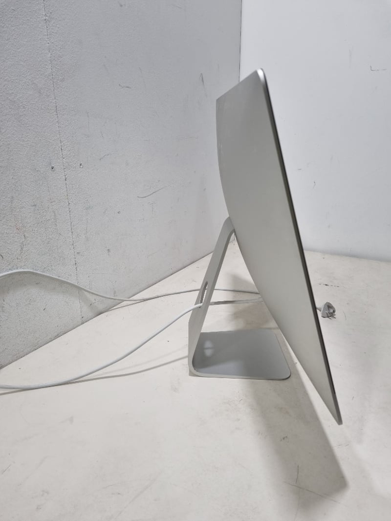 Apple iMac 21.5-inch all-in-one desktop computer featuring an Intel processor and integrated graphics. The device displays the characteristic aluminium unibody design with white bezel and silver stand typical of mid-2011 era iMacs. Includes original power cable and stand. The screen appears functional with no visible cracks or damage to the display panel. The aluminium chassis shows normal cosmetic wear consistent with age. Ports visible on rear include USB connections and power inlet. FCC certification markings present on rear panel confirming authenticity.Note: untested