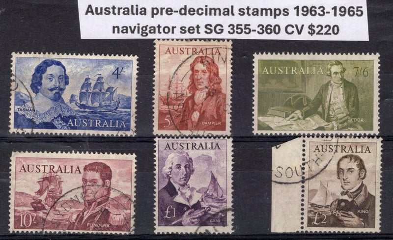 Australia pre-decimal stamps 1963-1965 navigator set SG 355-360