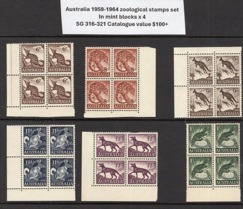 Australia 1959-1964 Zoological stamps set in mint blocks x 4 SG 316-321