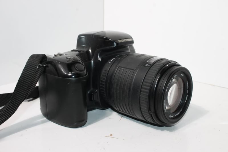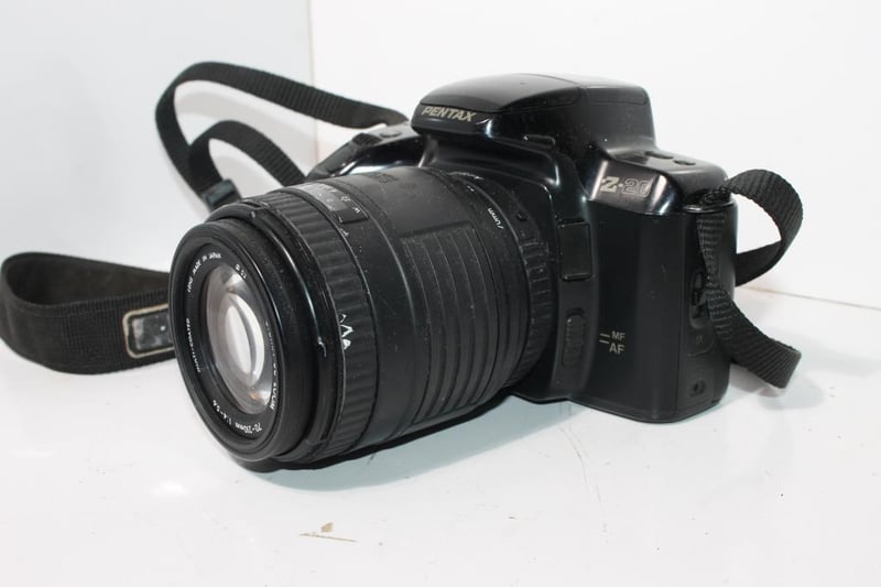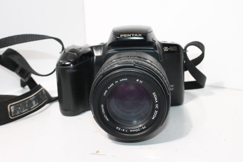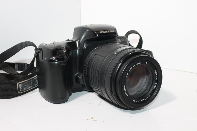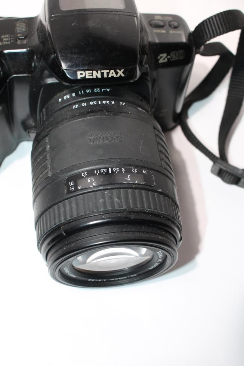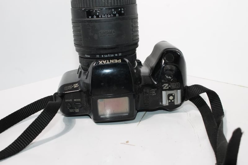Pentax Z-20 Film Camera with Sigma 70–210mm LensUsed condition with general wear from age and handling. Includes Pentax Z-20 body fitted with a Sigma 70–210mm zoom lens.