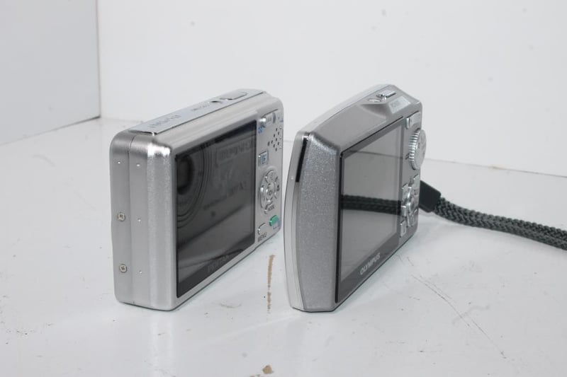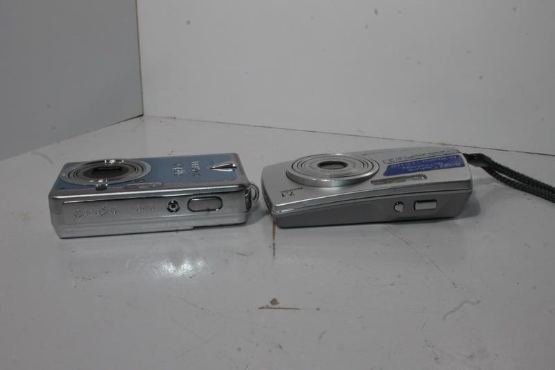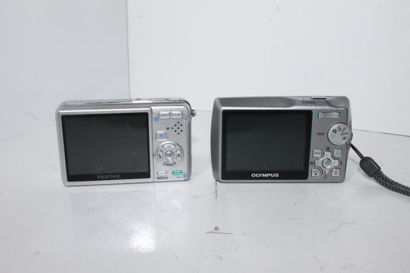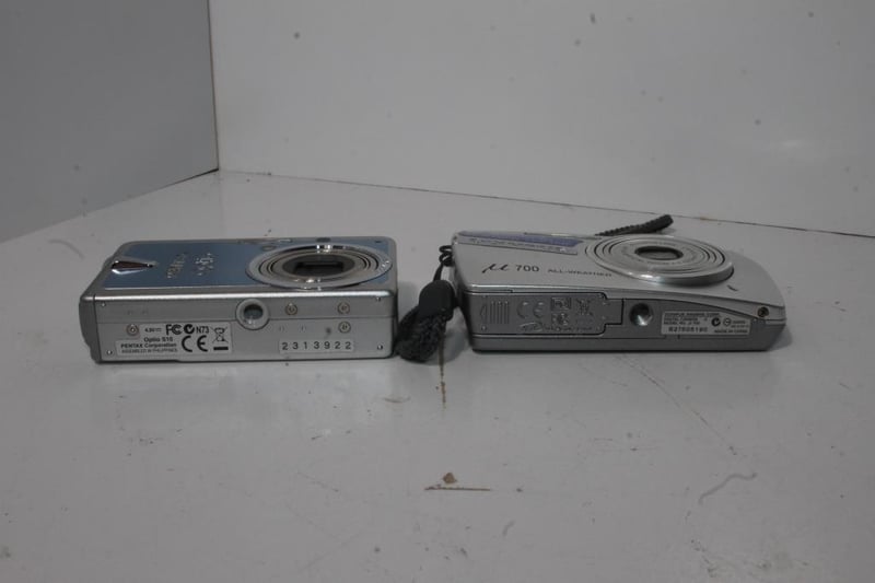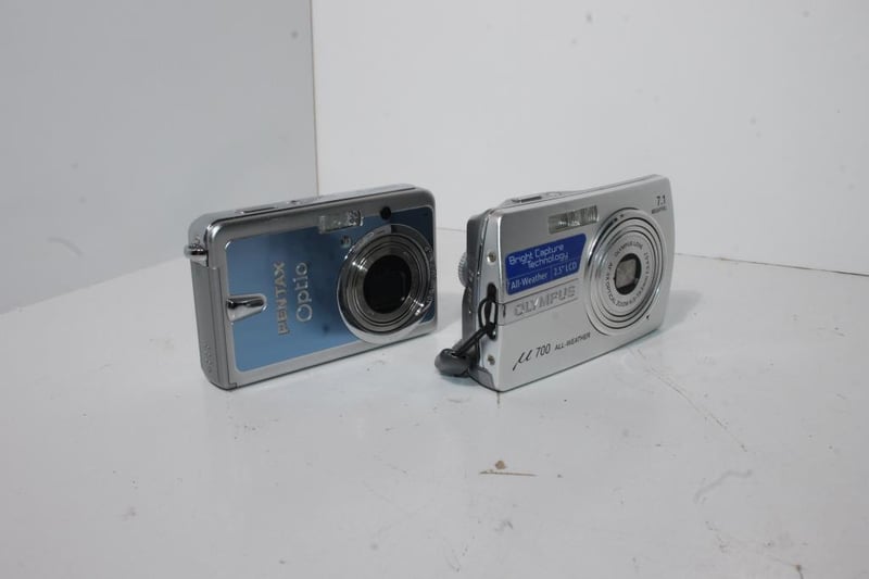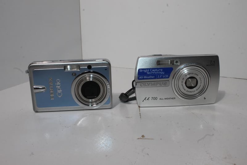 Olympus & Pentax Digital Camera Lot – µ700 & Optio S10 (2)Both in used condition with typical wear from age and handling. Includes two compact digital cameras.