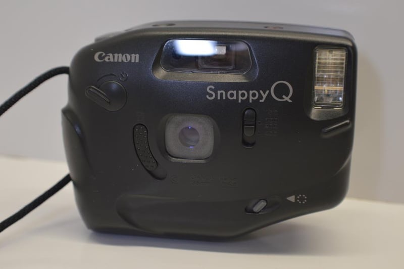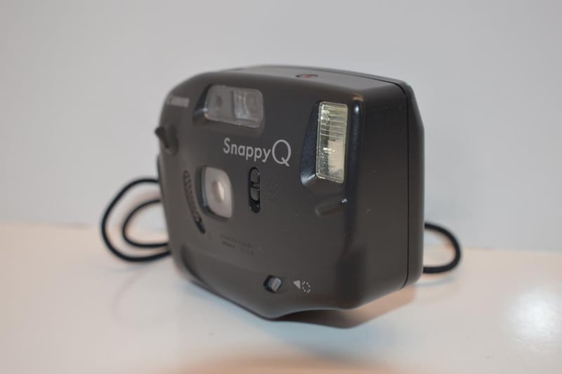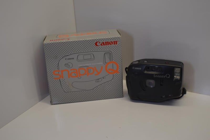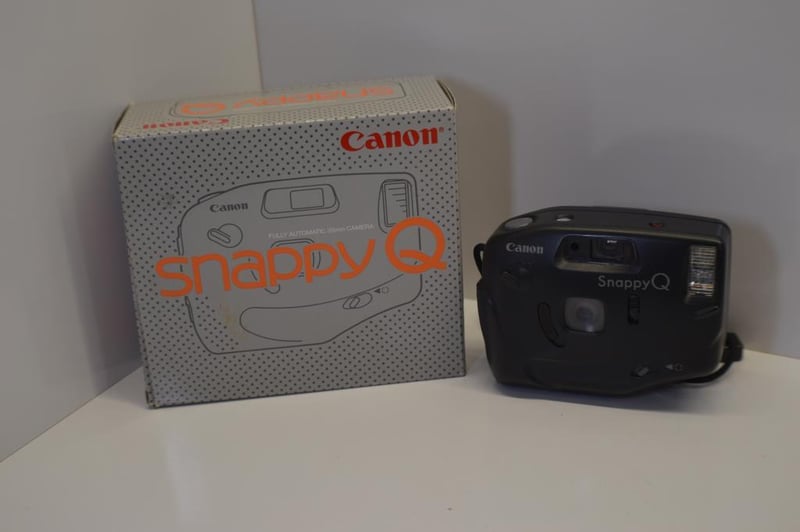 Canon Snappy Q Fully Automatic / 35mm Film Camera - Tested & WorkingIn original Box with Canon CoverCamera has been tested with batteries and film and is in full working condition. When button pressed, camera advances film and counter moves to next number. Shutter opens and closes. When camera reaches end of roll, film rewinds.