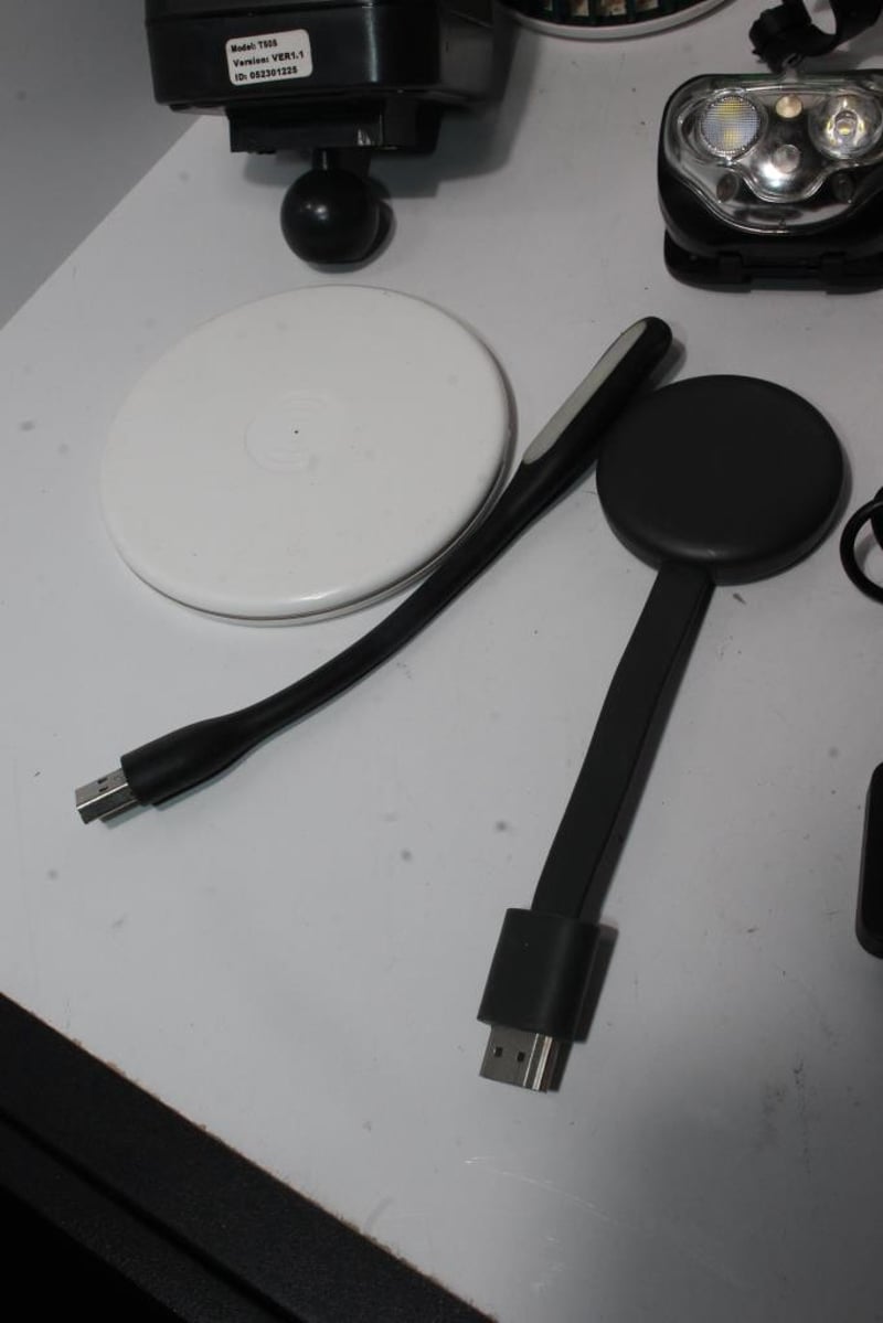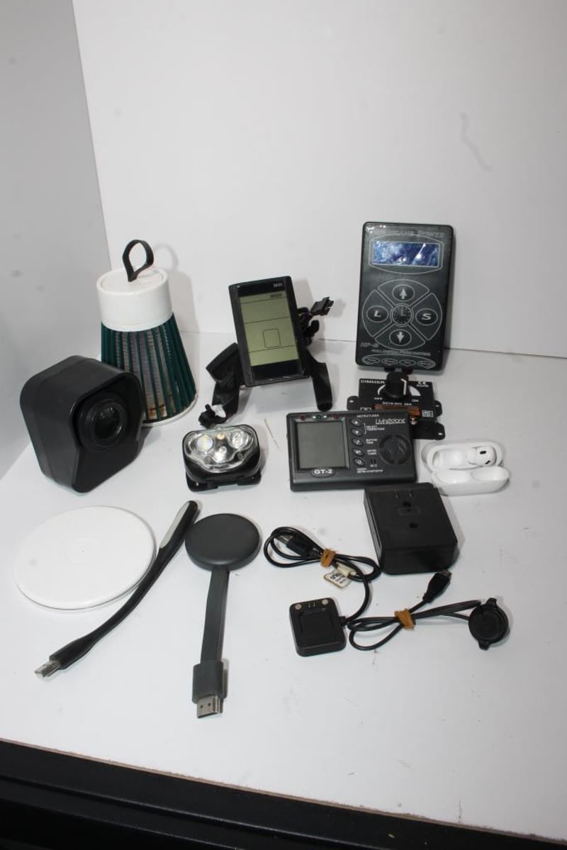 Electronics & Gadget Bundle – Mixed Devices, Modules & Accessories (1 Lot)Includes Hurricane Power HP-2 digital PWM controller, S830 display module with mounting parts, dimmer module, lighting units, mosquito zapper lantern, charging pads, small electronics and assorted cables as shown.Varied mix of components suitable for parts, projects or reuse, supplied exactly as photographed.