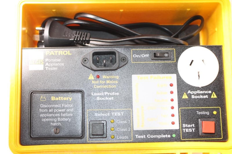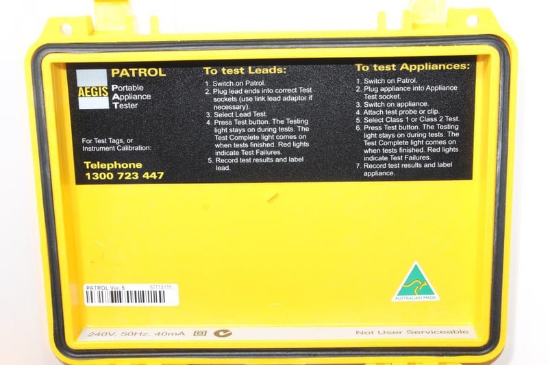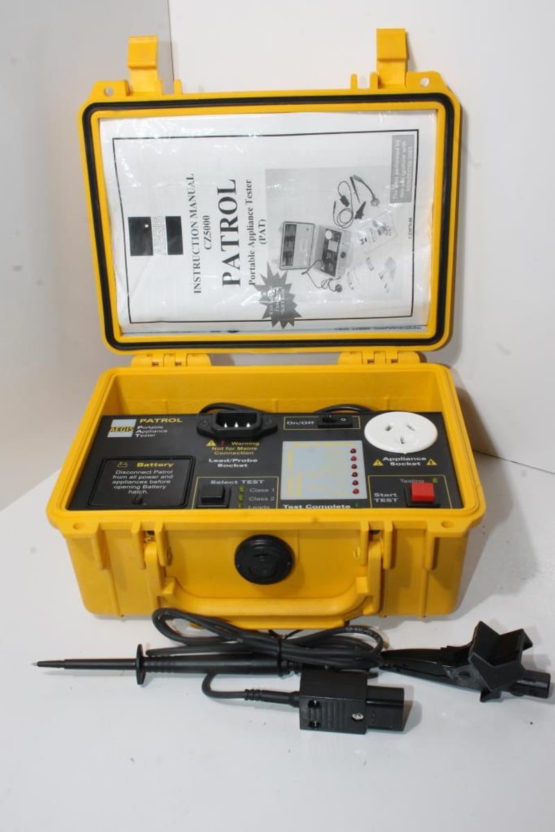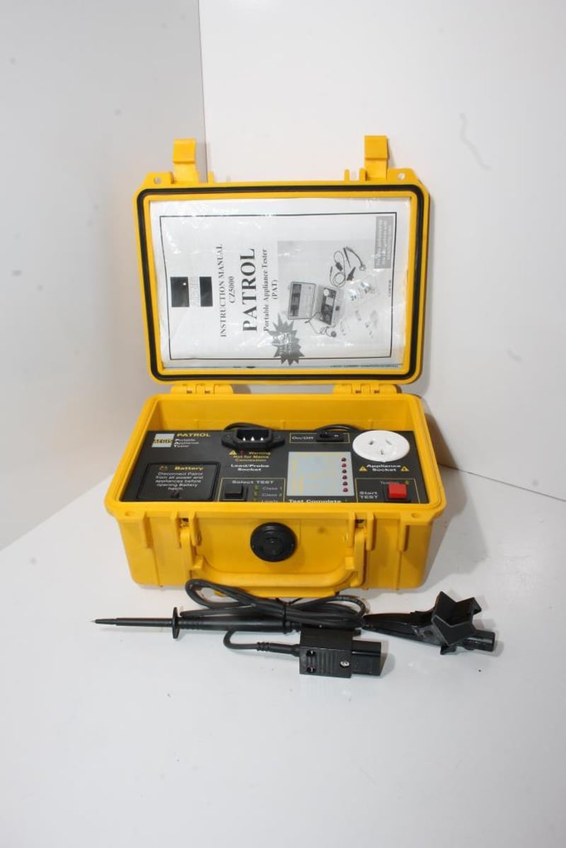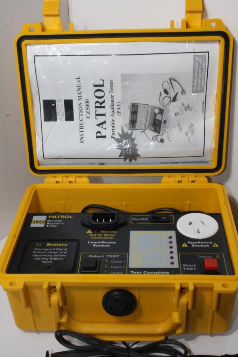 AEGIS Patrol CZ5000 Portable Appliance Tester – With Leads & CaseIn good overall condition. When switched on, all functions work, not tested by electrician – AEGIS Patrol CZ5000 PAT tester in hard case with instruction manual, leads and probe as pictured.
