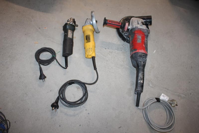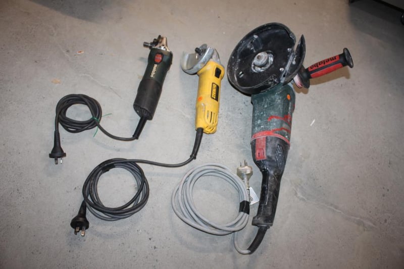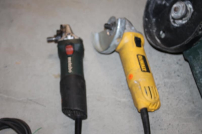Metabo & DeWalt Angle Grinder Lot – Mixed Models (3)All untested and in varying condition – assorted corded angle grinders as photographed.Includes mixed sizes and models; condition varies.