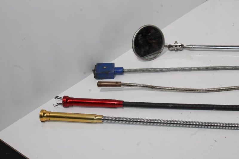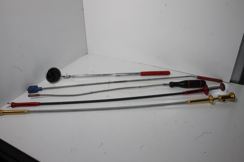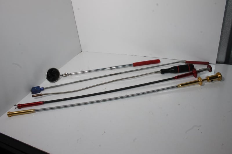 Automotive Retrieval Tools Lot – Grabbers, Flexible Pick-Up Tools & Inspection Mirror (1 Lot)Includes extendable inspection mirror, flexible shaft magnetic pick-ups, claw-style retrieval tools in multiple lengths, and assorted specialty reach tools with metal coil shafts.Useful mixed set for automotive, workshop or general mechanical access tasks, supplied exactly as photographed.