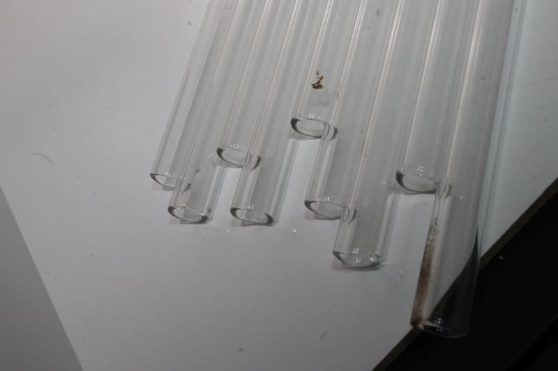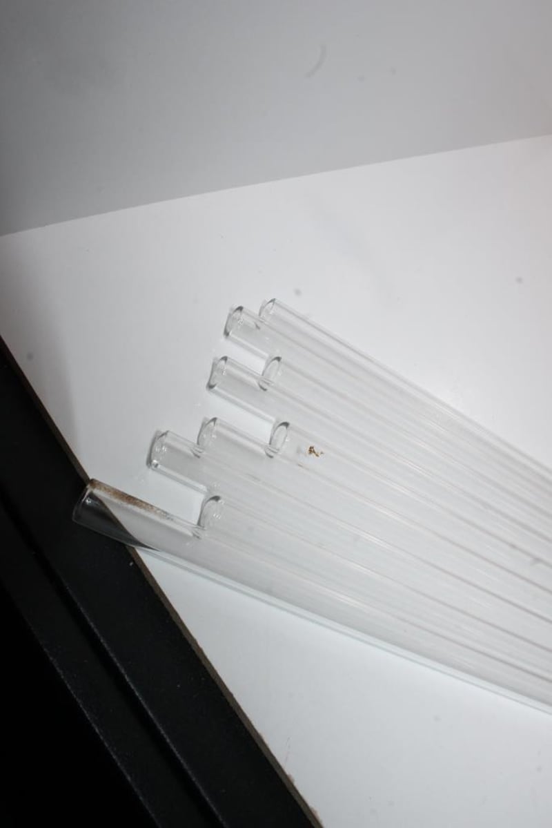 Glass Tubes – 10-Piece Lot (70 cm Length, 9 mm Diameter)Set of long clear glass tubes measuring approx. 70 cm in length and 9 mm in diameter.Presents in used condition with some light marks from storage.