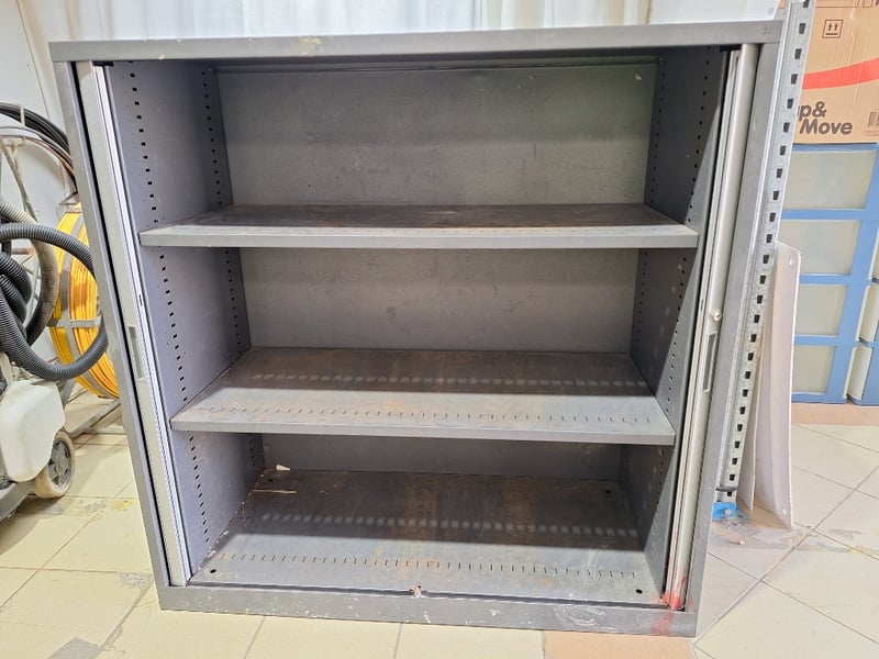 Storage Shed With Shelving, No Key, Metal Style, Silver FinishDimensions H:120.5 W:120cm D:50cm