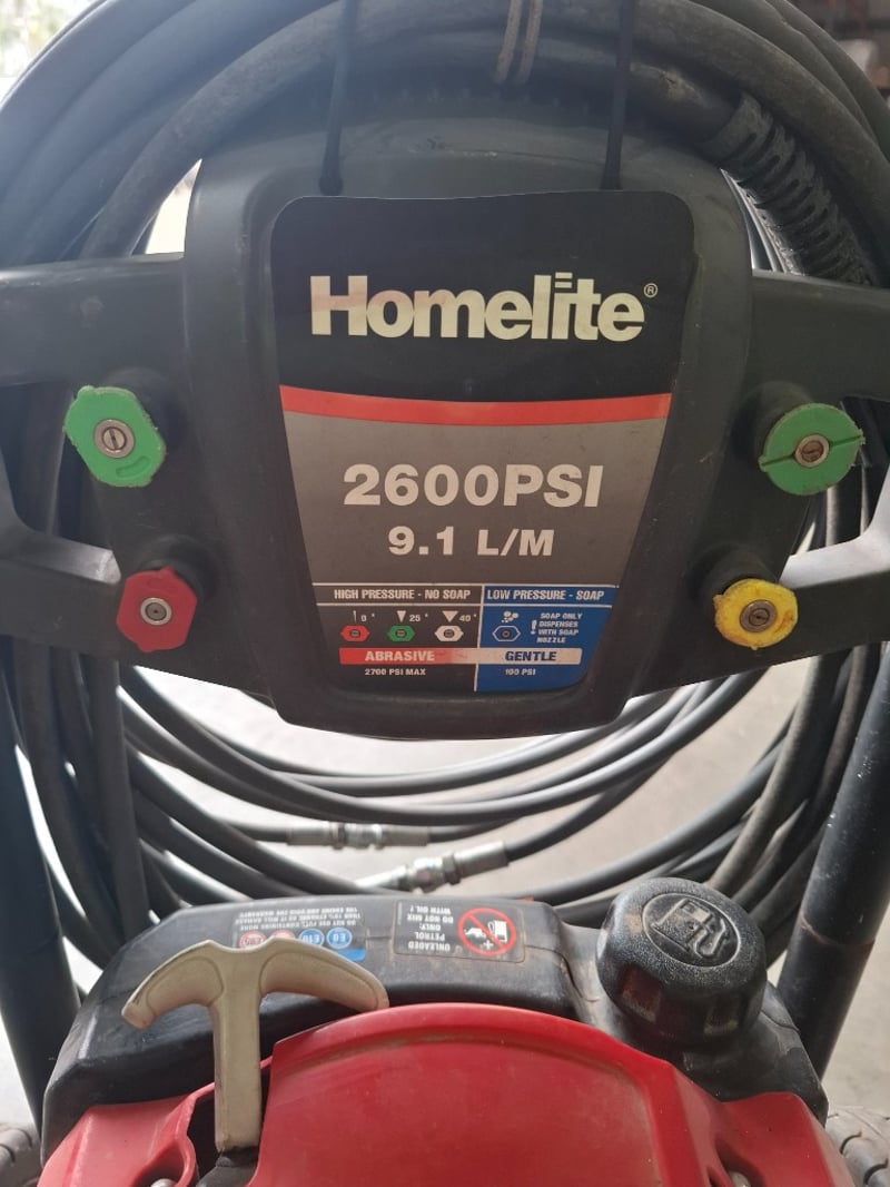 Homelite 2600PSI 4 stroke Pressure Washer, With wand , long hose with connectors, 4 Wand tips