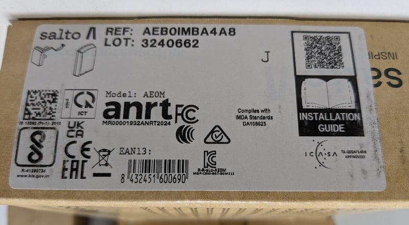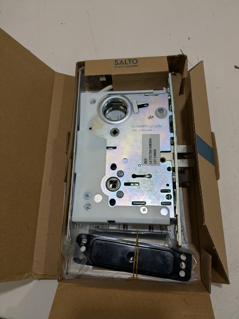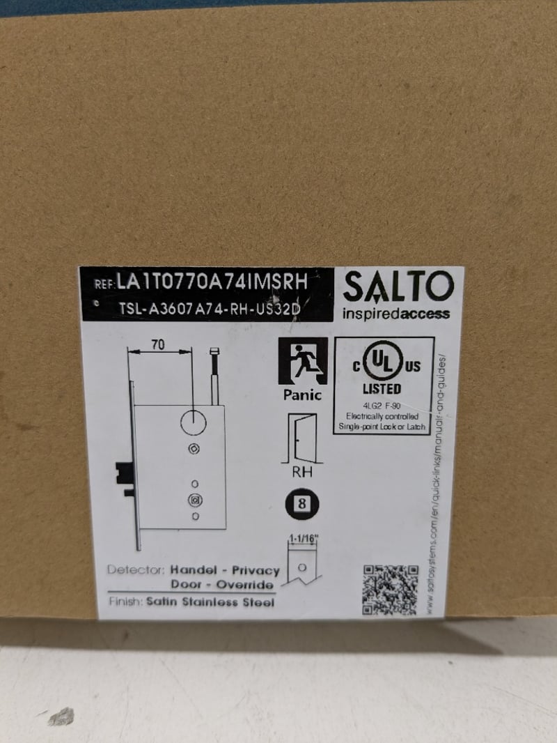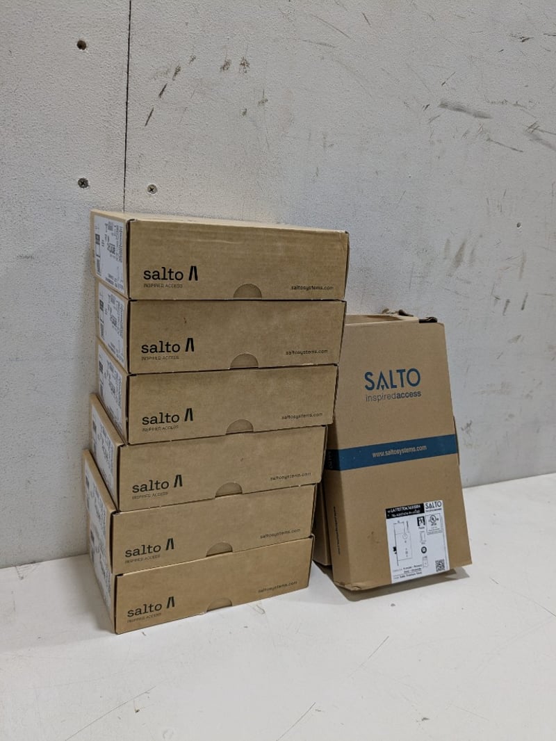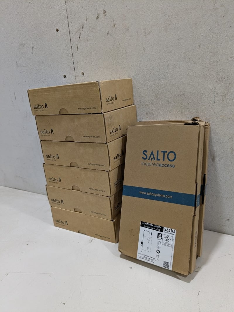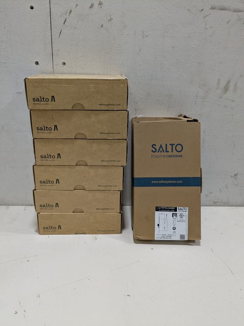 Assorted SALTO items includes handel - privacy door - override, finish: satin stainless steel and model: AEOM electronic part.