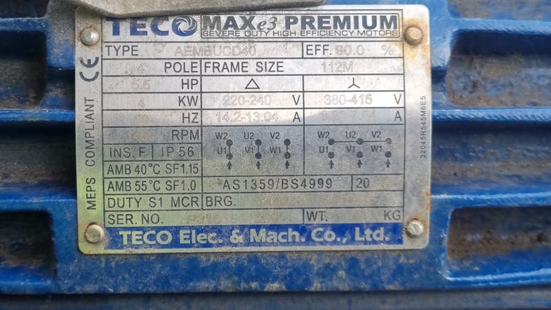 Industrial Workshop 3 Phase Air Compressor, CAPS Ingersoll-Rand, Teco Max 5.5Hp Electrical 220v - 415V Motor With IP66 Upgrade Rating