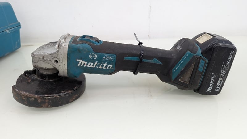 Grinder, Makita, Model: DGA506, With 5.0Ahm Battery and Carry CaseNote: Working, Recommend for Parts