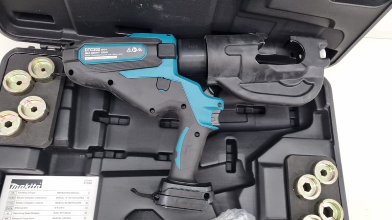 Crimping Tool, Makita Cordless DTC302ZK, Features 18v Battery Compatibility, Includes Various Crimping Dies In Hard Case