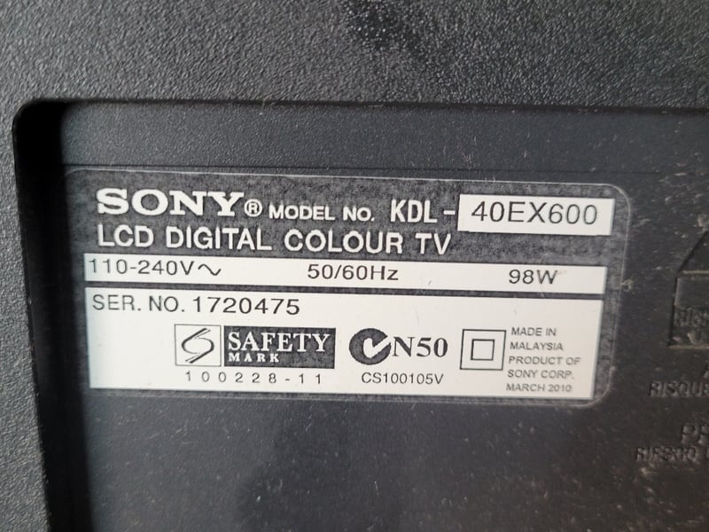 Sony Bravia Television LCD Digital Colour. Serial No. 1720475.