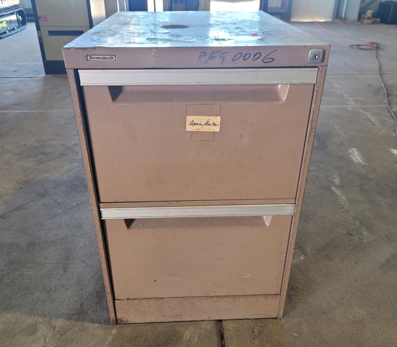 Brownbuilt 2 Drawer Cabinet. Key Included. Used Condition. Inspection Advised.