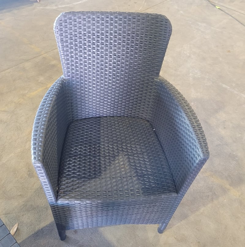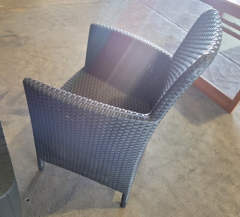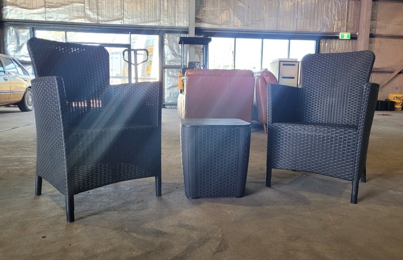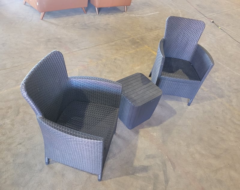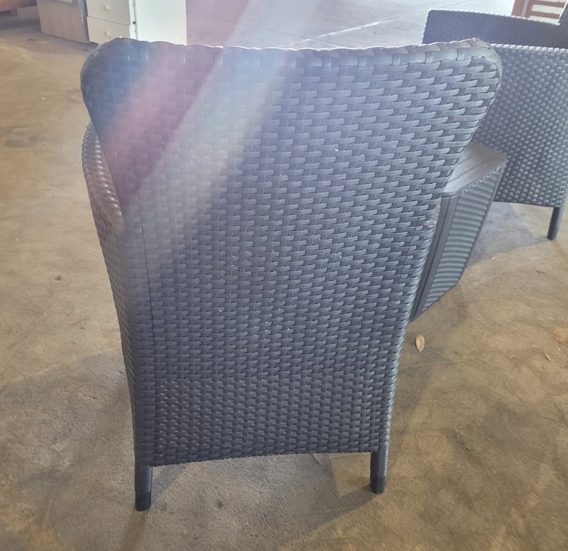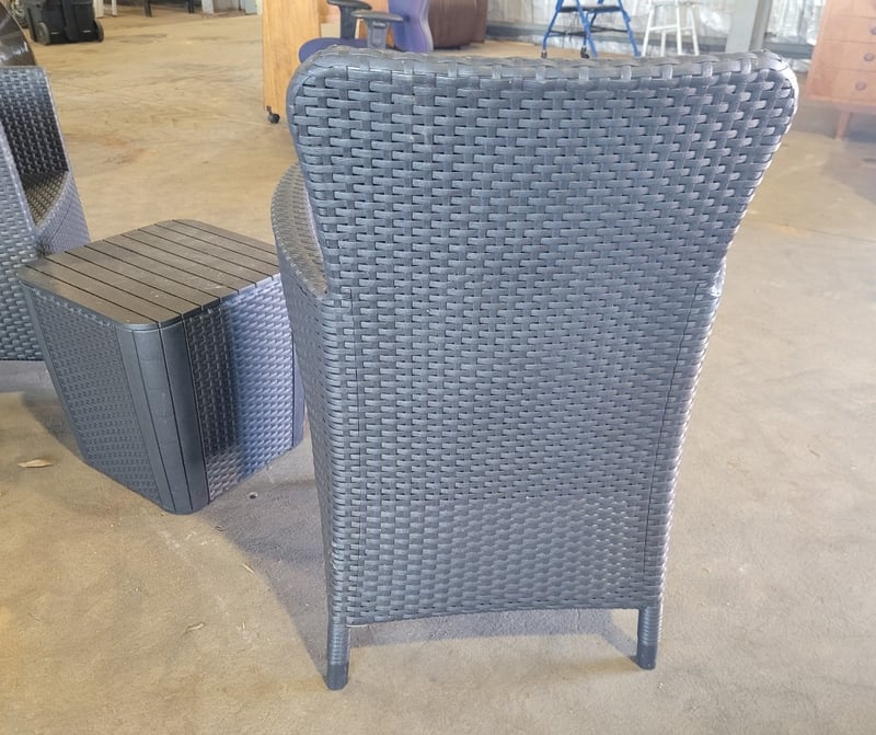 Wicker Chairs (2) plus Small Table - Black. Used Condition. SOLD as LOT.