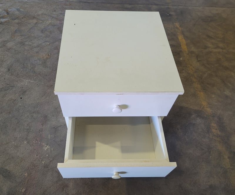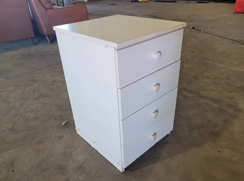 Wooden 4 Drawer Bedside Table - White. Used Condition.