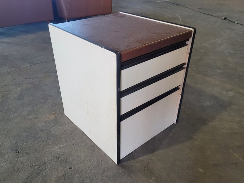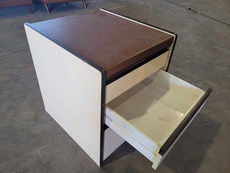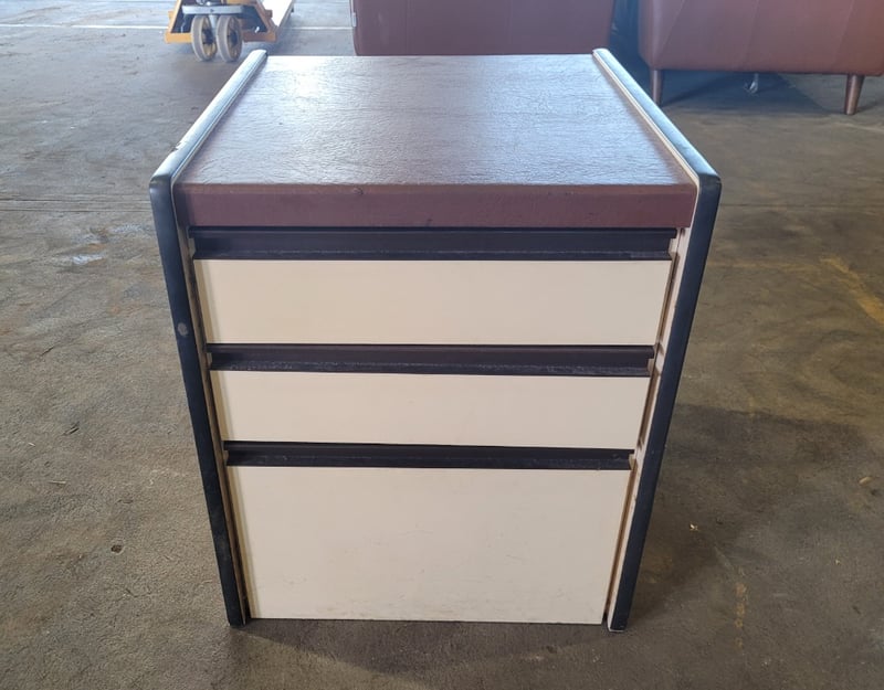 Wooden 3 Drawer Bedside Table - White and Brown. Used Condition.