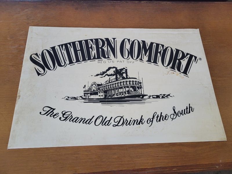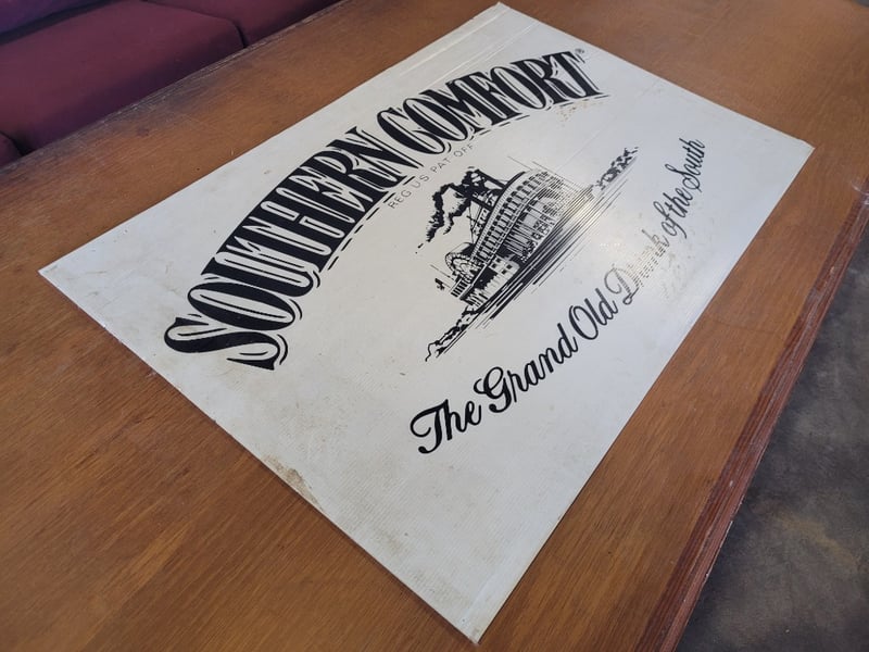 Southern Comfort Promotional Cardboard Sign. 90cm x 58cm. Used Condition.