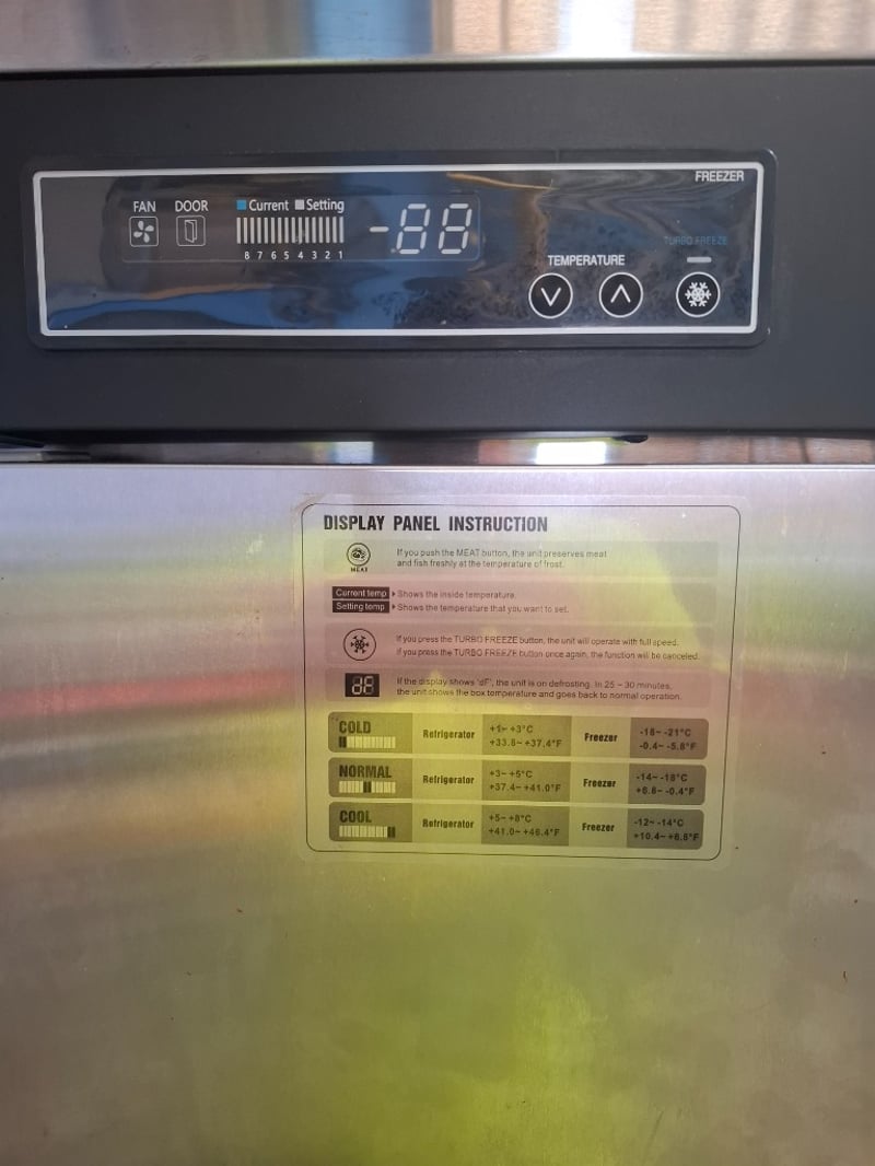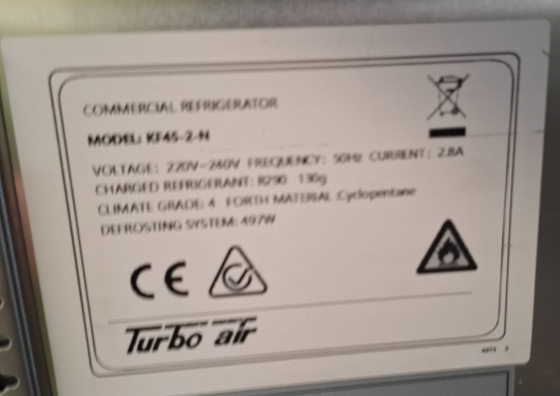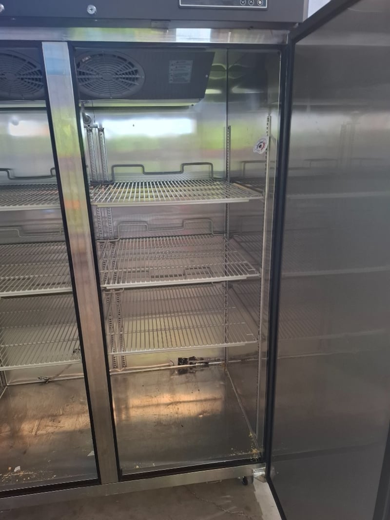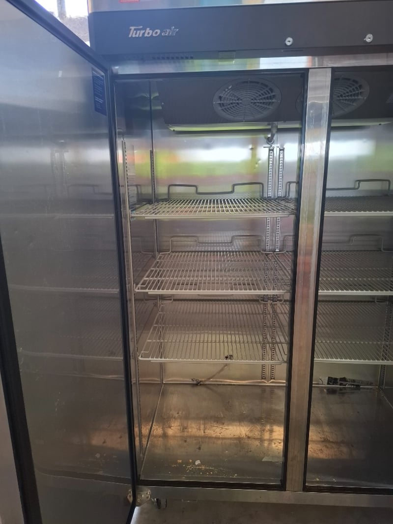 Turbo Air Commercial Fridge, 2 doors, with Lighting and 6 shelves and Castor Wheels.