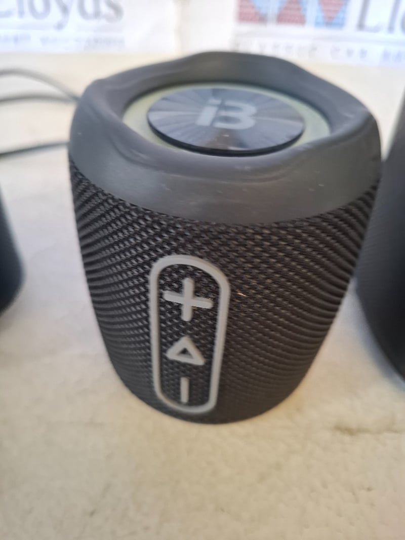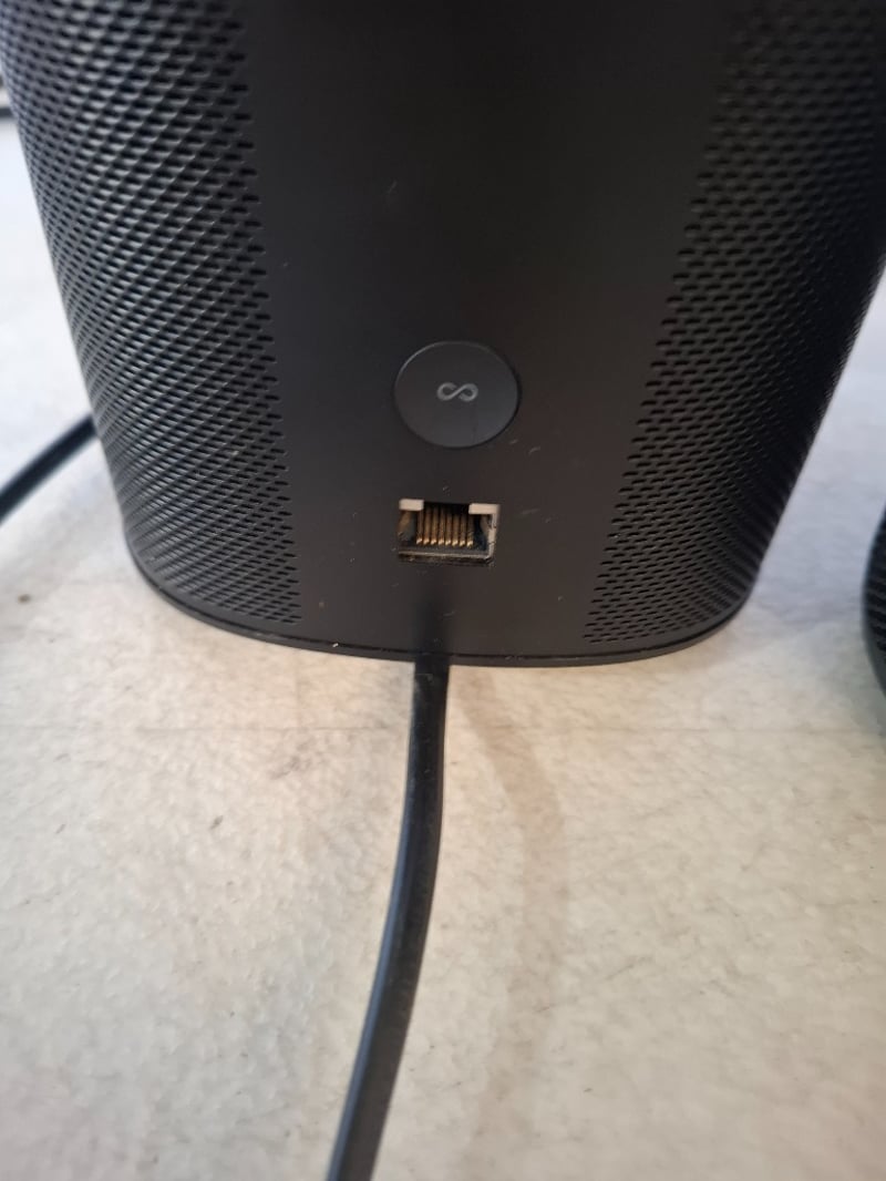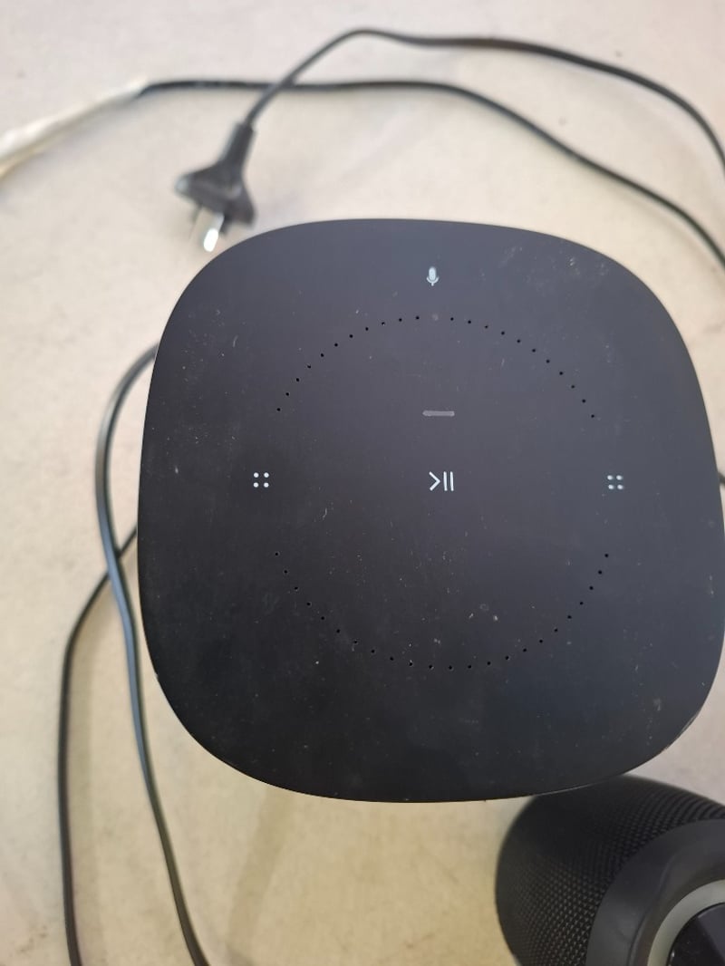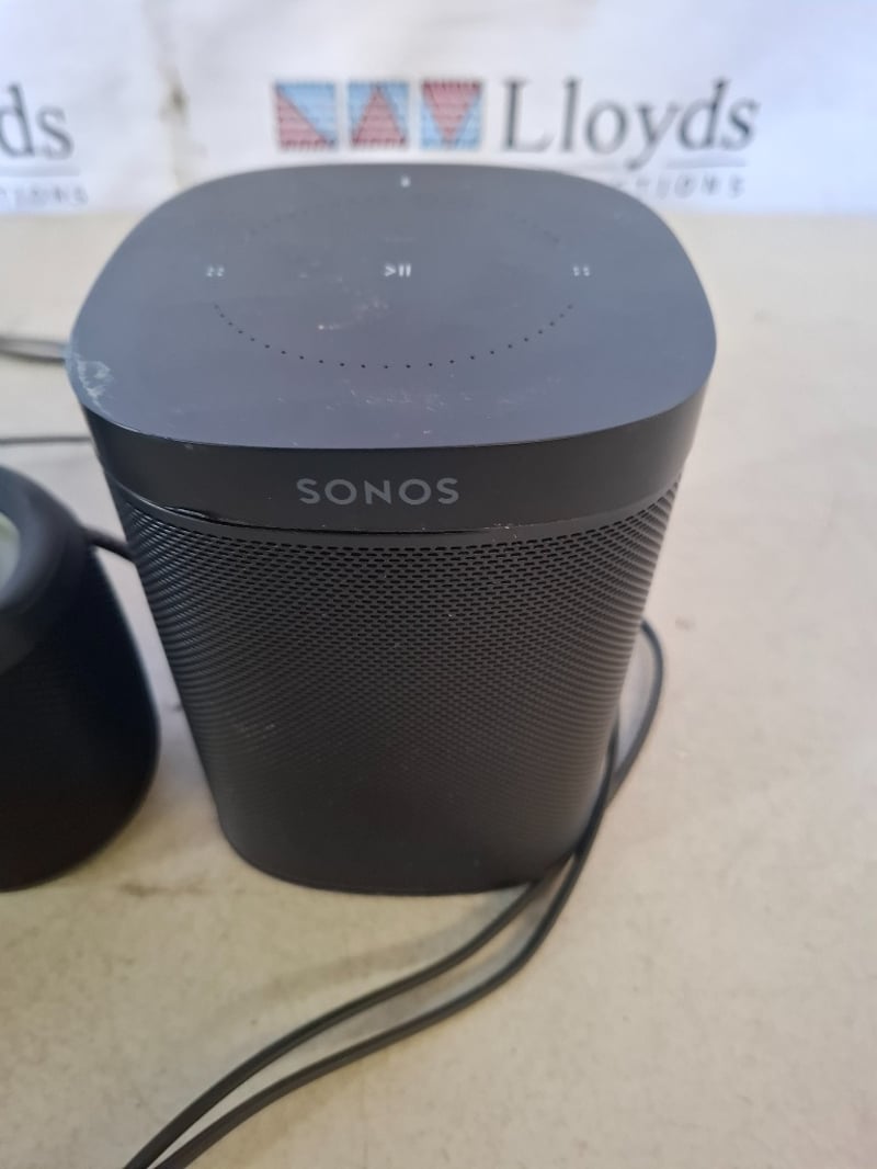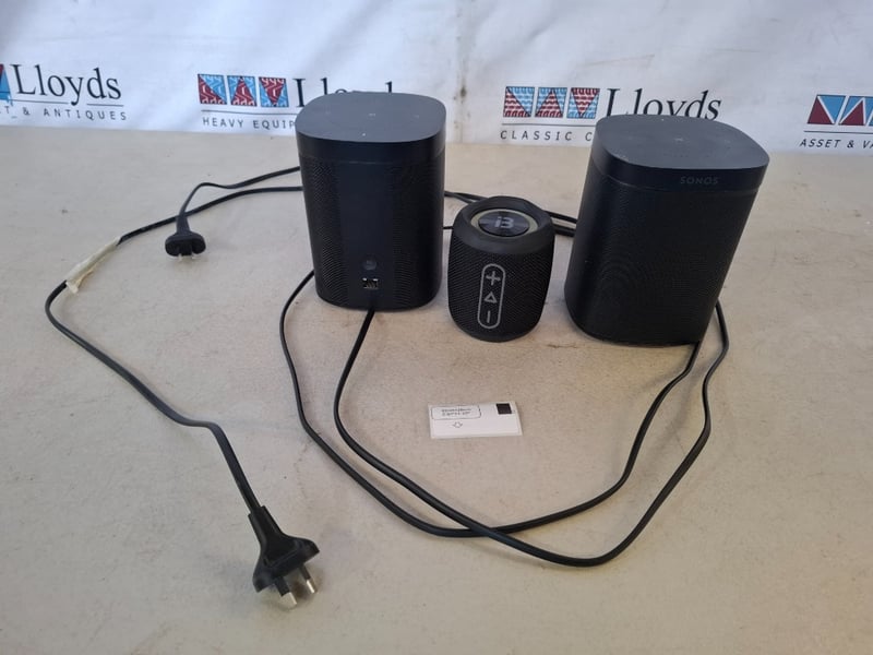Assortment of equipment including 2x Sonos cord computer speakers with built in microphone , 1 x wireless speakers