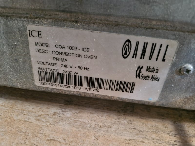 Anvil Convection Oven 10A Electric, 240°C Max Temp with 2 Trays