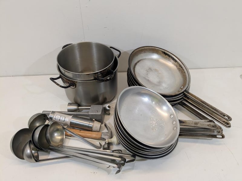 Assorted Cookware, assorted brands and styles, assorted pots, pans, ladles and miscellaneous.
