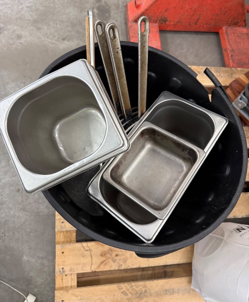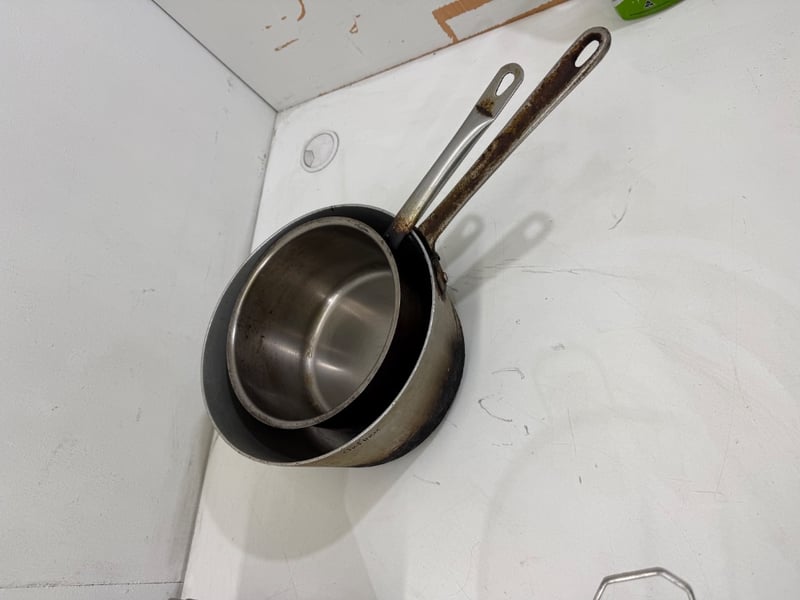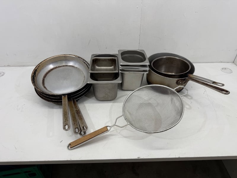 Cookware, Unkown brands, Assorted types, Pots, Pans and metal containers Quantity 1- Sold as lot
