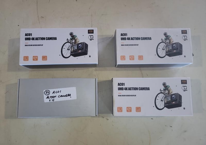 RRP $210 4 x AC01 UHD Action Camera. New Condition. SOLD as LOT.
