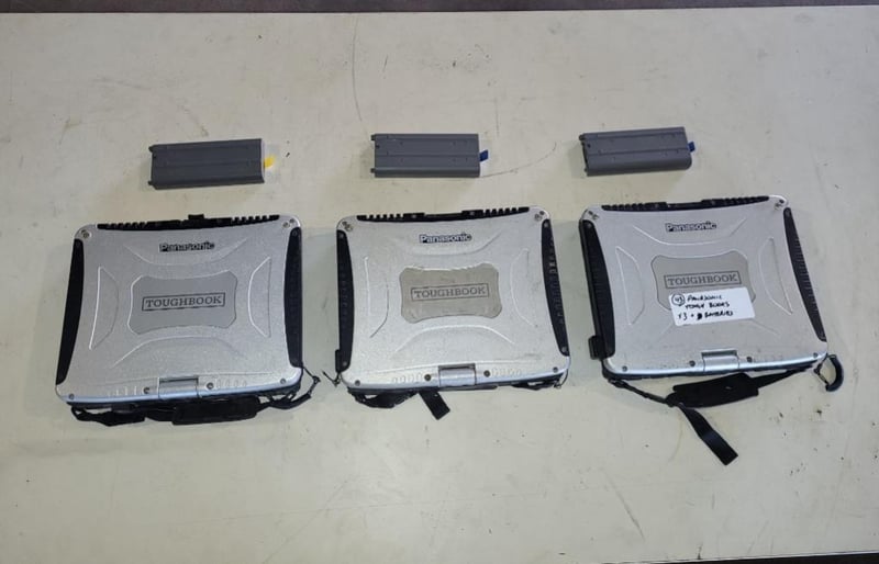 3 x Panasonic Tough Book with 3 Batteries. SOLD as LOT.