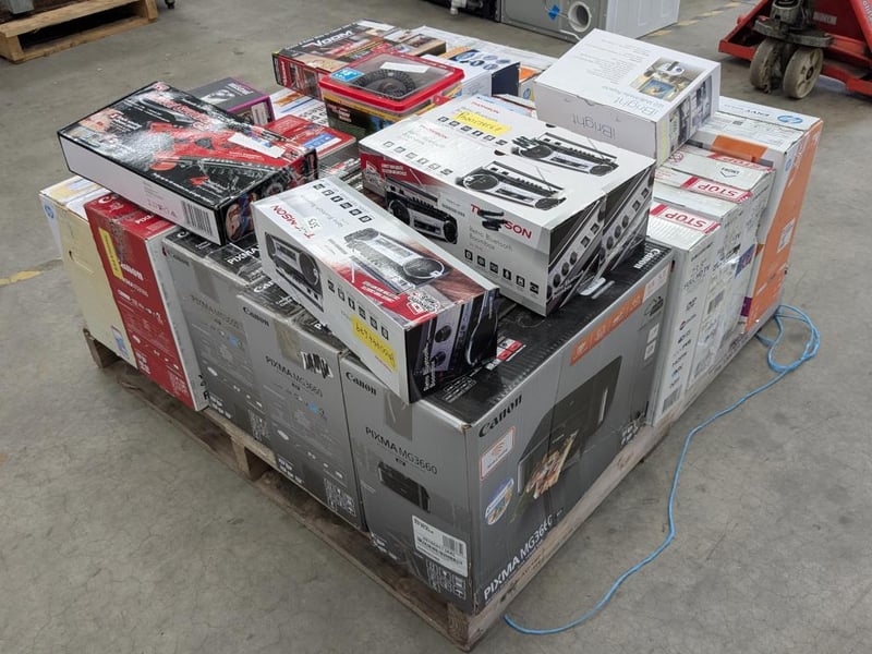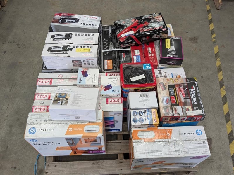 Assorted Bundle of Tech, Appliances and Homewares Includes: Blaupunkt 23.8" TV's Thompson Bluetooth Boombox HP Printer Copper Bullet Hose Thomson DVD player Canon Pixma Printers