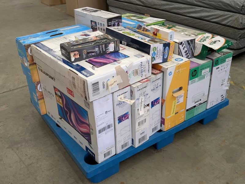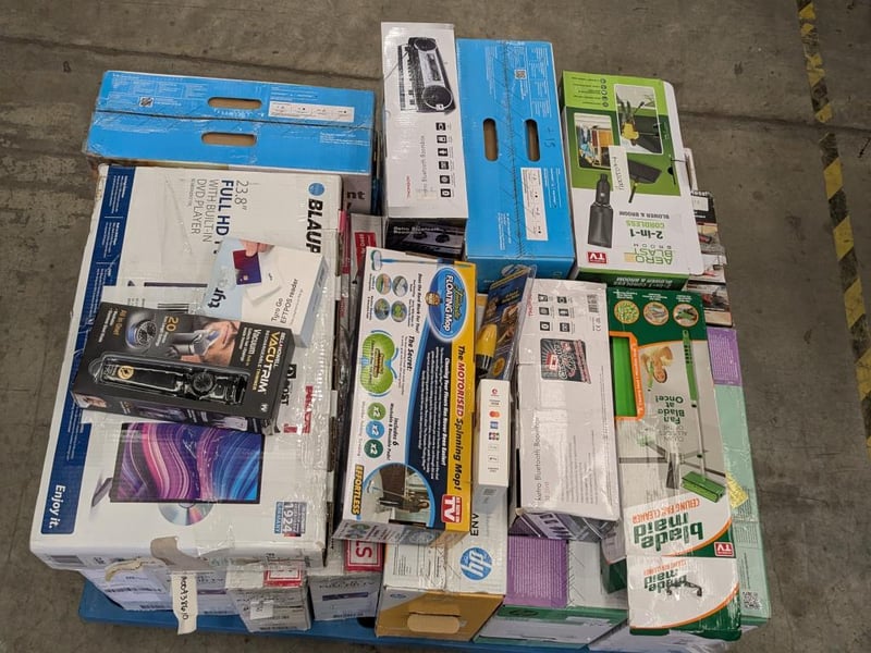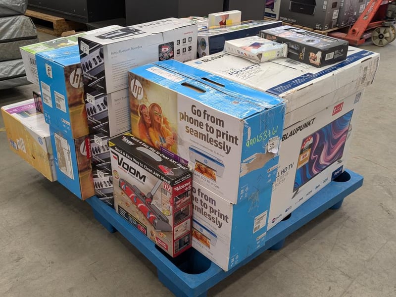 Assorted Bundle of Tech, Appliances and Homewares Includes: Blaupunkt 23.8" TV's Thompson Bluetooth Boombox HP Printer Floating Mop Ceiling fan cleaner vacutrim shaver