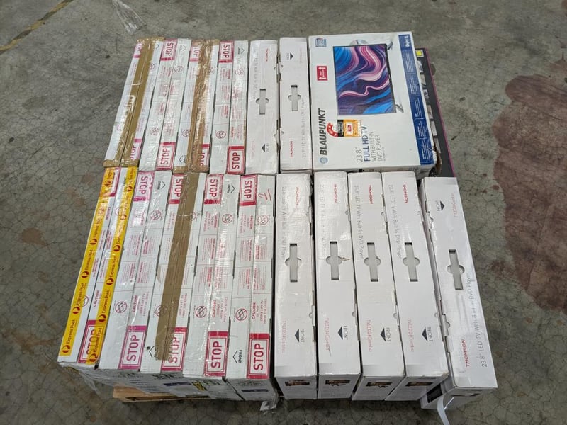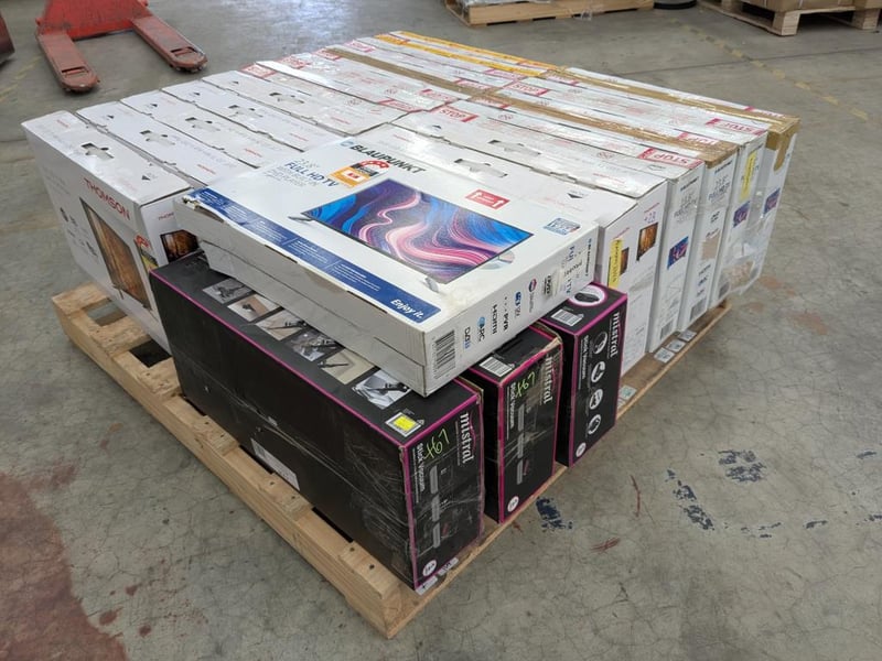 Pallet of Blaupunkt 23.8" TV's and Mistral Vacuums, quantity 18 tv's, 3 vacuums