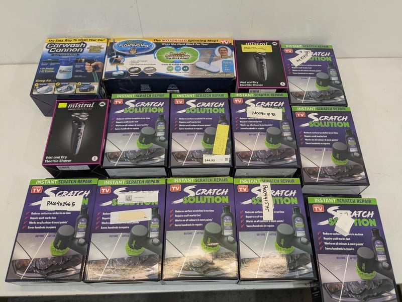 Assorted Bundle of Homewares and Electronic accessories, Includes: Scratch Solution Carwash Cannon Shaver