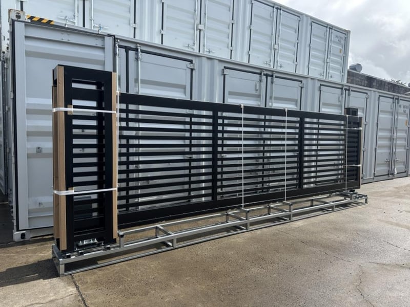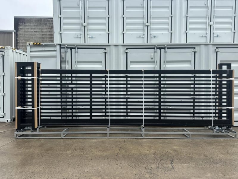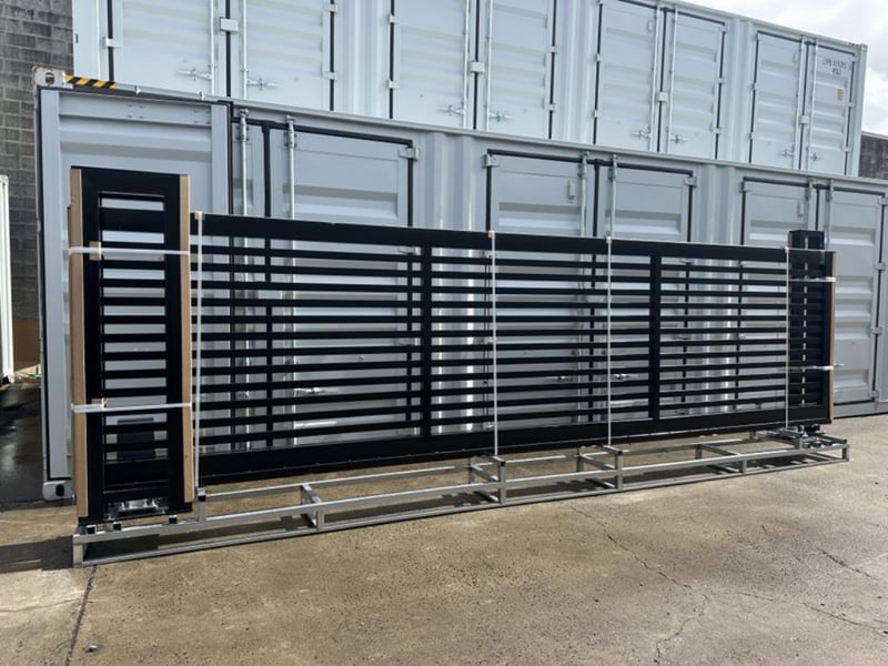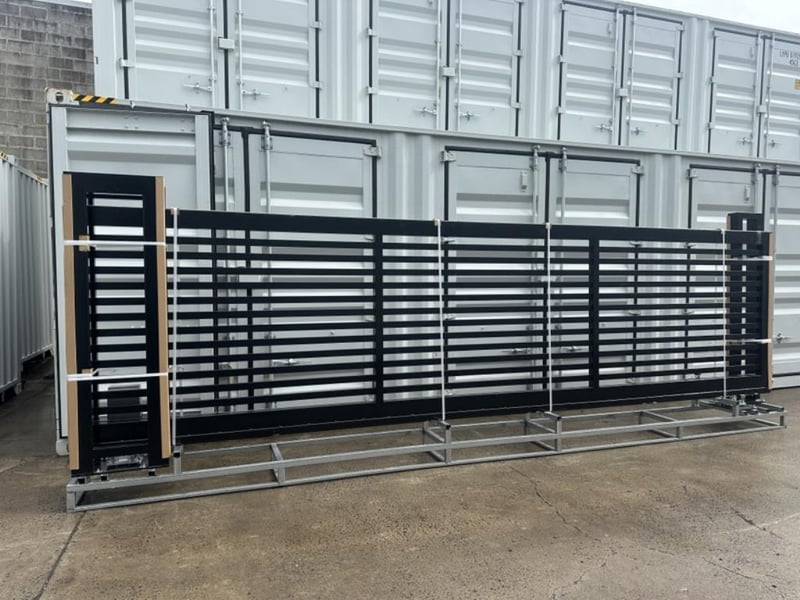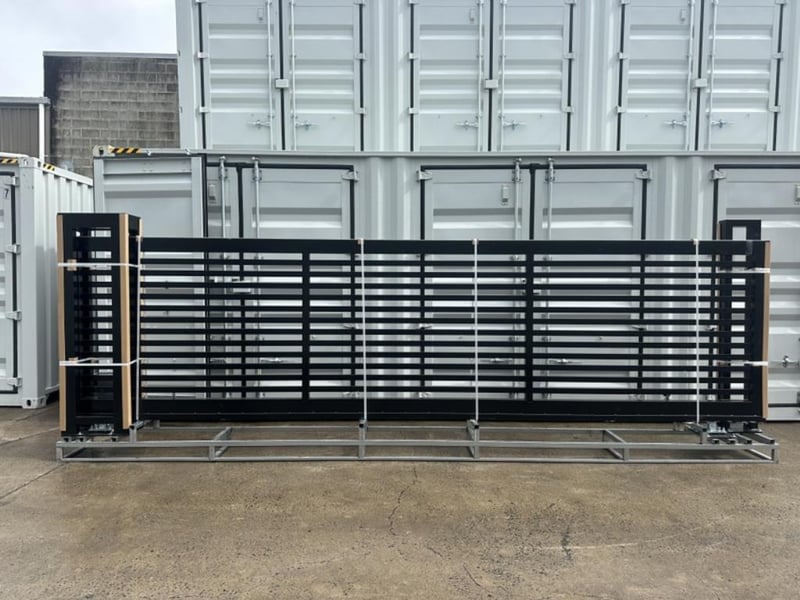 6M Electric Sliding Gates Key Features: High-Quality Construction – Robust steel frame with a sleek, weather-resistant finish. Automated Operation – Includes a 220V electric motor for smooth and reliable opening and closing. Heavy-Duty Track System – Ensures long-lasting performance with minimal maintenance. Secure & Safe – Fitted with safety features to prevent accidents and unauthorised access. Easy Installation – Pre-assembled for quick setup; comes with reinforced pallet fittings for stability. Approx 6 metres wide, 1.55 metres high, 500mm wide. Comes with MD 550 electric motor speed 12M / Min, remote controls . Approx Shipping dimensions 6 metres long 500 mm wide 2.1 metre high RSE CODE: 0031 Location: Carole Park, QLD Contact: Gage on 0458 732 549 or alternatively [email protected]