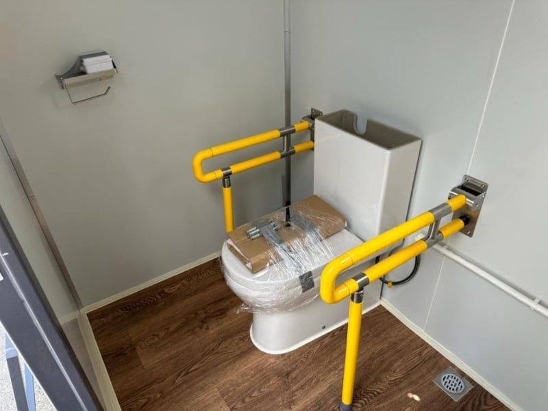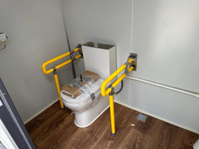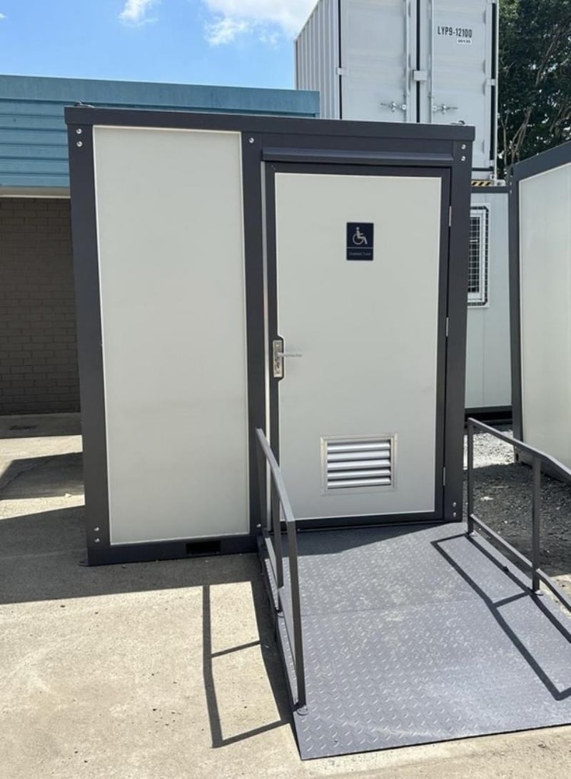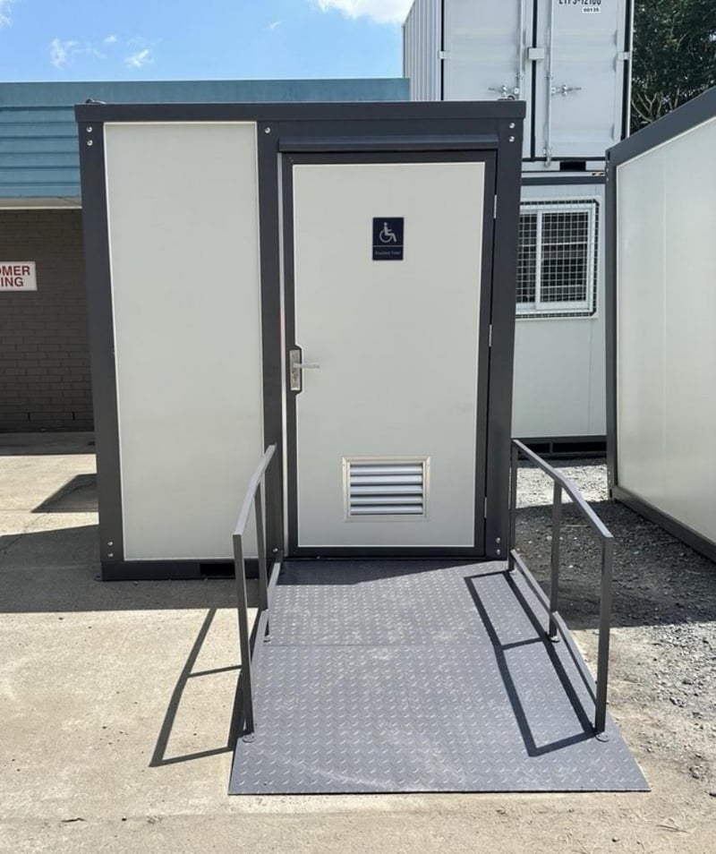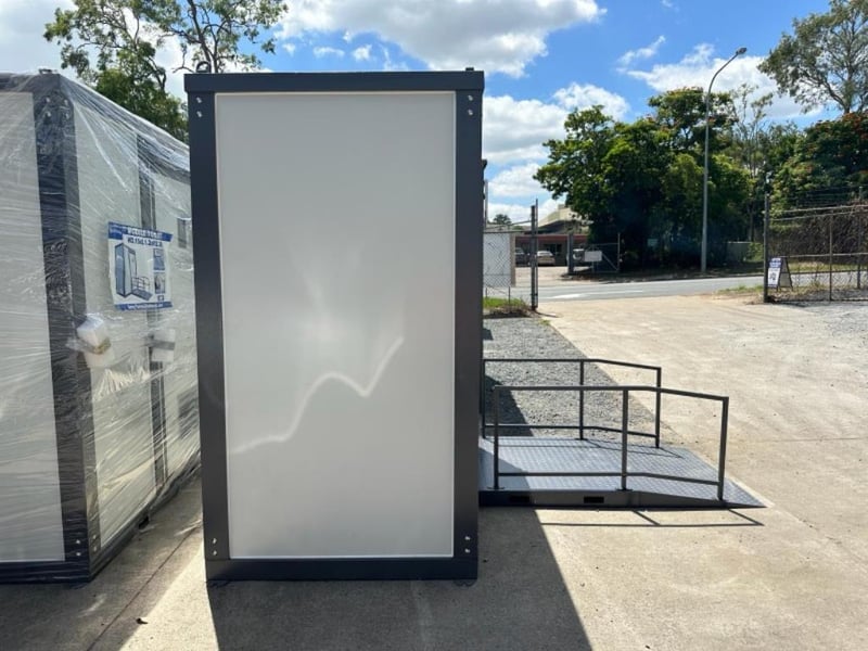 Disable Toilet Block FEATURES: - Toilet - Sink - Window - Ramp - Lockable - Lights - Extractor Fan/Vents Dimensions: H2360mm x W2160mm x Ramp Length 2320mm Weight Approx 500kgs RSE CODE: 0013 Location: Carole Park, QLD Contact: Gage on 0458 732 549 or alternatively [email protected]