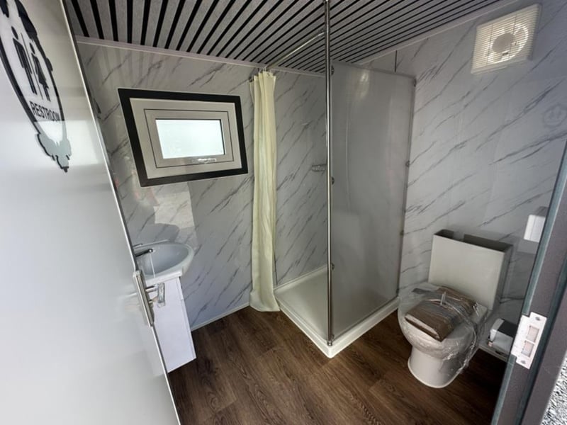 Square Shower & Toilet Block FEATURES: - Shower - Sink - Extractor Fan/Vent - Lights - Lock and Key - 2 Door Cupboard - Mirror - Power Point - Drain - Push Out Window Dimensions: 1900mm Long, 2160mm Wide, 2400mm High Weight: 880Kgs RSE CODE: 0009 Location: Carole Park, QLD Contact: Gage on 0458 732 549 or alternatively [email protected]
