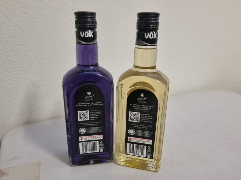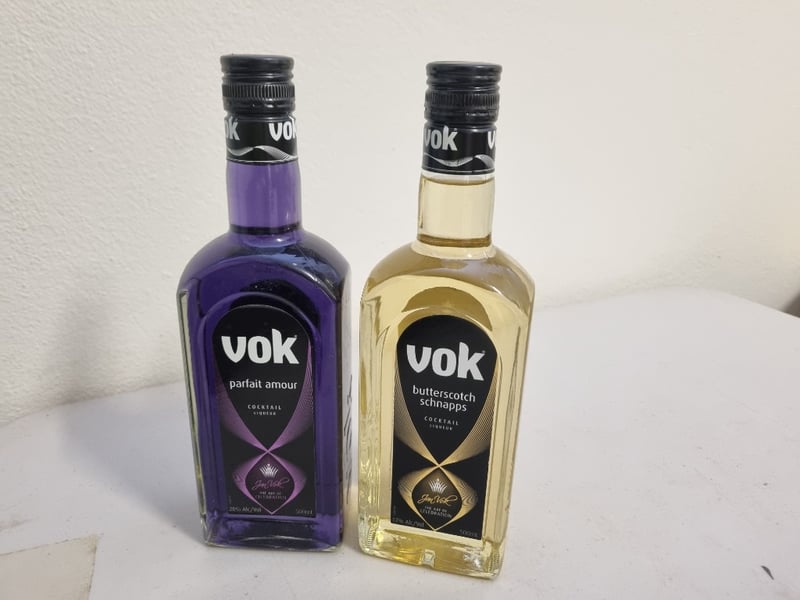 VOK bottles x 2 1 - Parfait Amour 500ml1- Butterscotch Schnapps 500mlUnopened Sold as lot